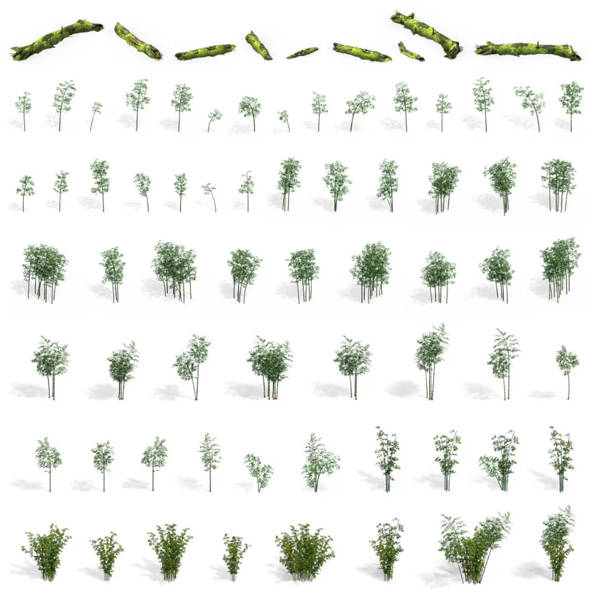 Here is 2.5D Rendered, Transparent Background Bamboo, Tree, Plant, Wood, Tree Bark Construction Kit Game Assets.