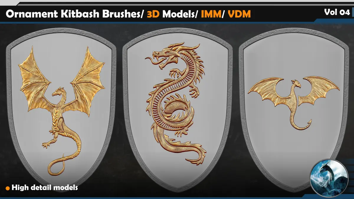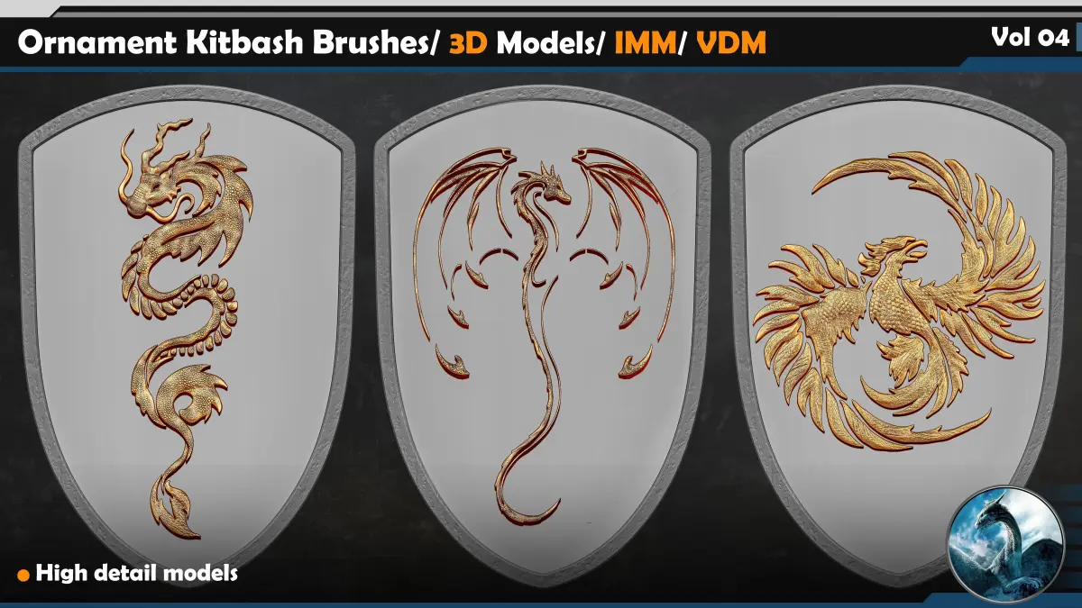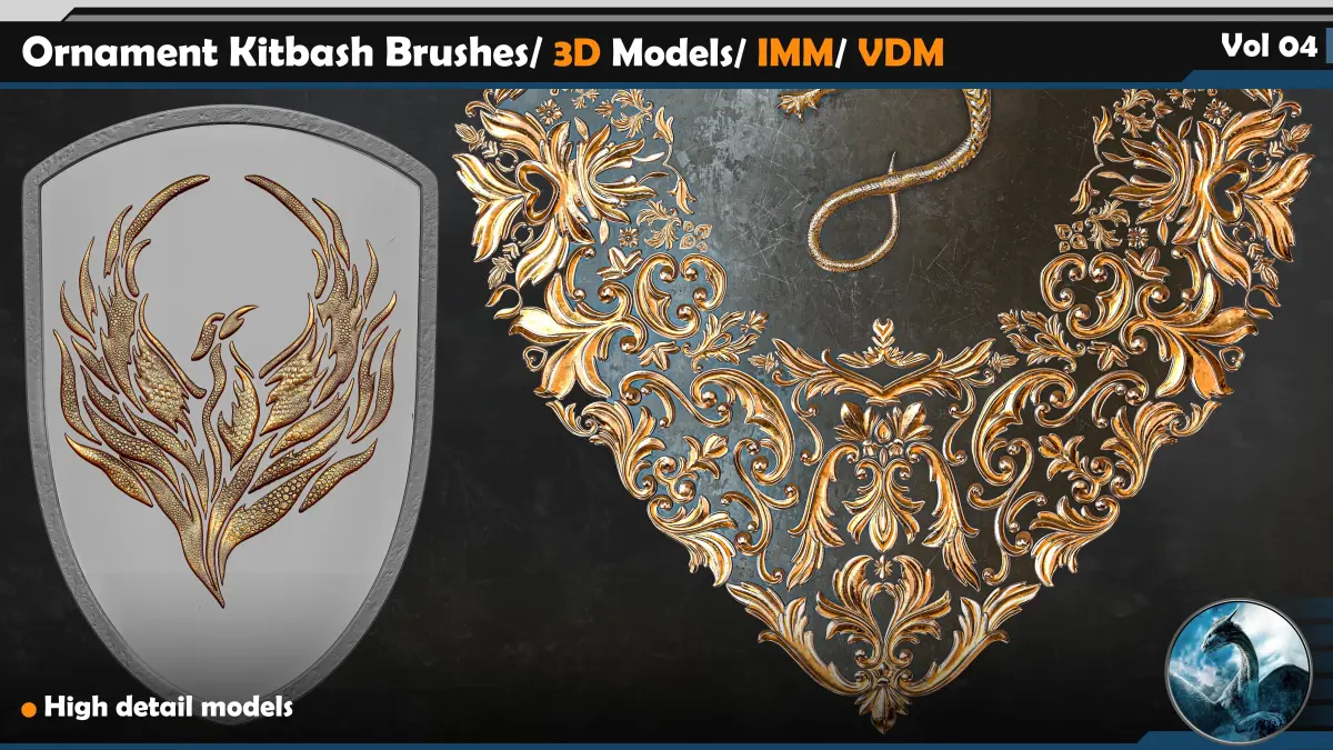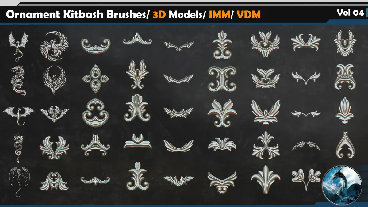 This Product include 110 Ornament Kitbash Brushes/ 3D Models/ IMM/ VDM Vol 04
