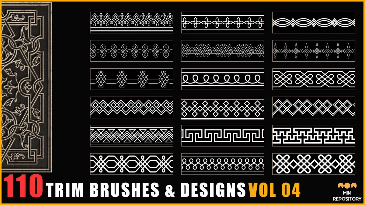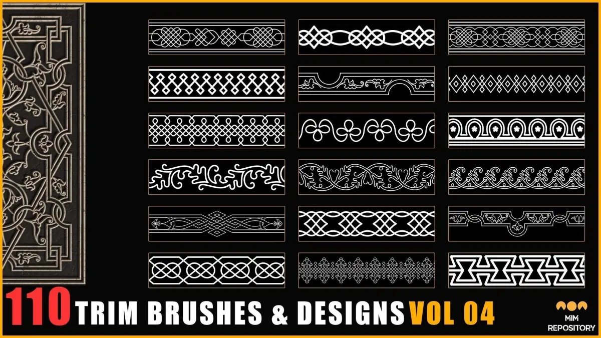 This collection features 110 Trim Brushes & designs in a variety of formats including ZBP, PSD, PNG, and TIFF. With 4K resolution and 16-bit images, these brushes are designed to help you achieve stunning results in your artwork.