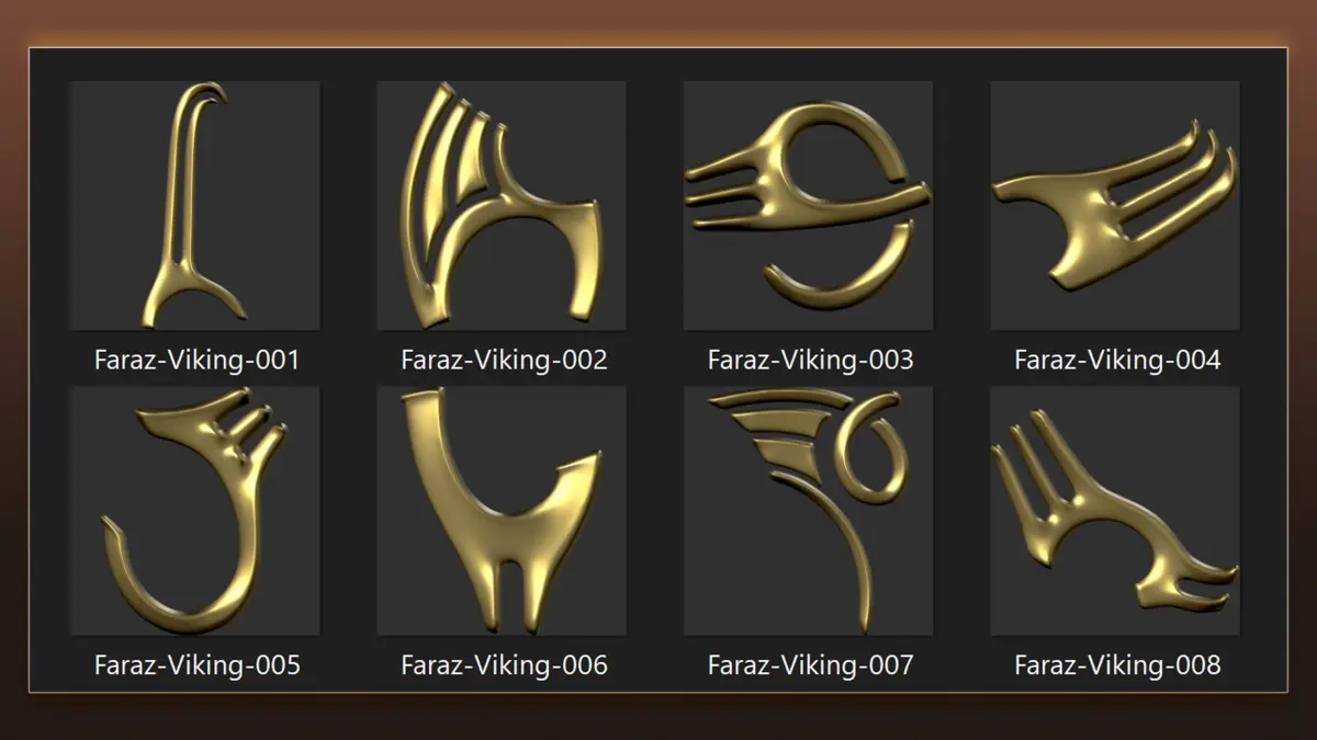 - This product includes 110 Viking element alpha, ZBrush brush,Photoshop brushes and 3D Model.