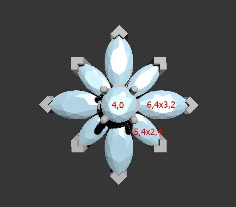 - Round diamond- 4.0mm-2gems / marquise 6,4x3,2 - 8 gems 5,4x2,4 - 8 gems