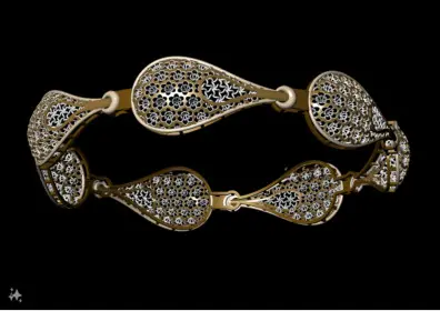 The bangle's profile is slightly convex to enhance light reflection, providing a luxurious and radiant appearance. It is designed with a precise diameter and thickness to ensure proper fit and durability, taking into account standard size variations. The 3D model incorporates high-resolution details to capture every intricate element, ensuring it translates perfectly during production.