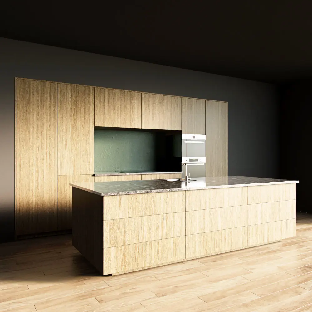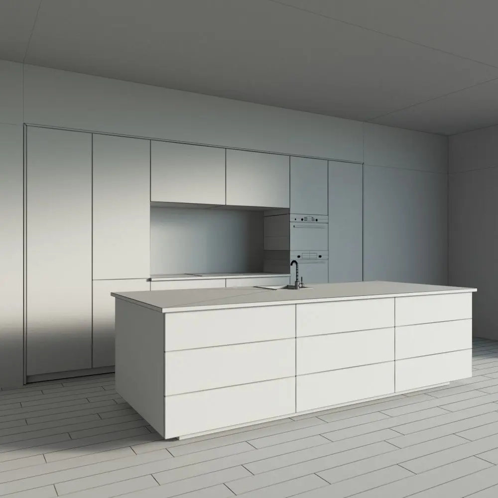Only the kitchen and the island are present in the scene. The floor, walls, ceiling are yours.
