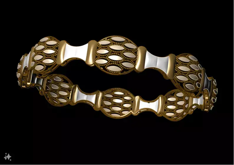 The polished finish enhances light reflection, while the organic motifs lend a timeless elegance suitable for bridal, festive, or luxury collections.