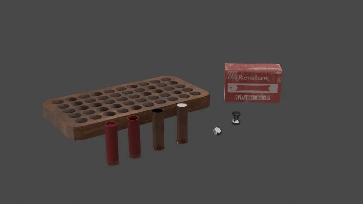 A set of shells for a 12 gauge rifle. Includes empty and loaded cartridge, stand, ammo box, assorted bullets.Low poly model, well optimized for mobile games. Includes such sets of textures: