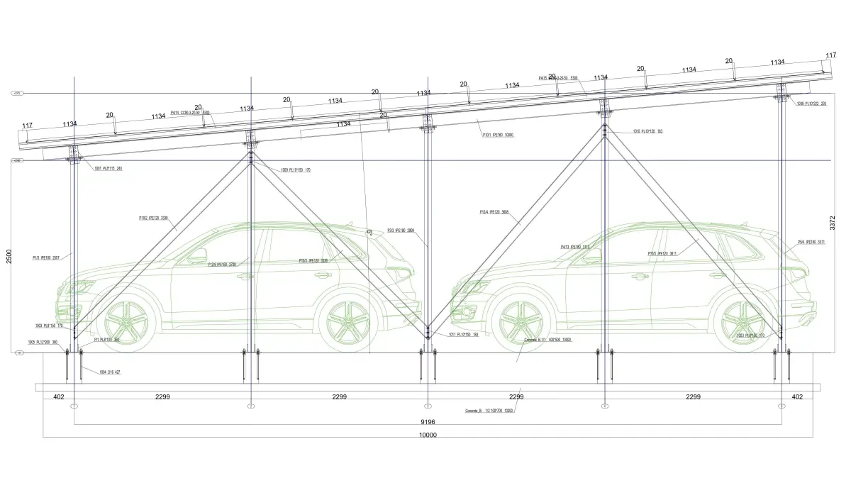 1 solar carport steel construction produces 11,75 kWp power in 1 hour