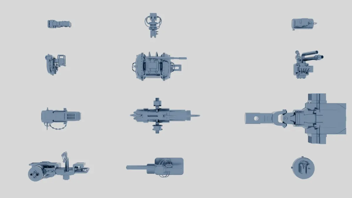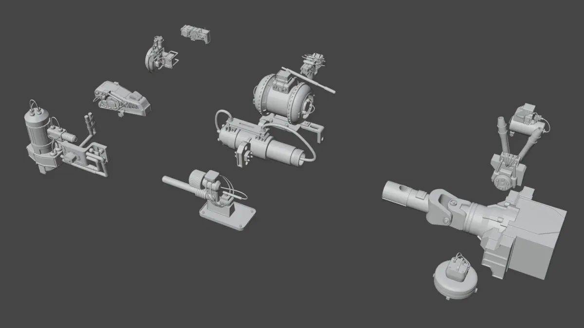 This is my own collection of 12 hard surface mechanical structures. Engine parts, mechanical arms, generators and more! Enjoy and thanks for the support! Update includes some fixes to meshes. Meshes are joined and curves are converted to mesh 1 user