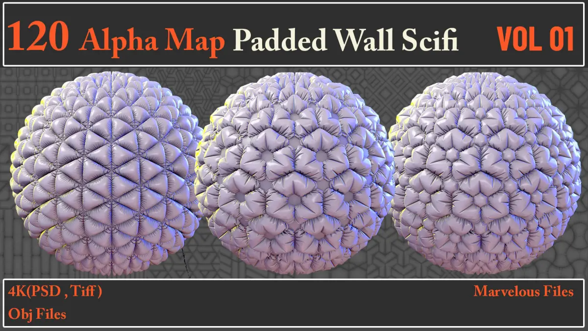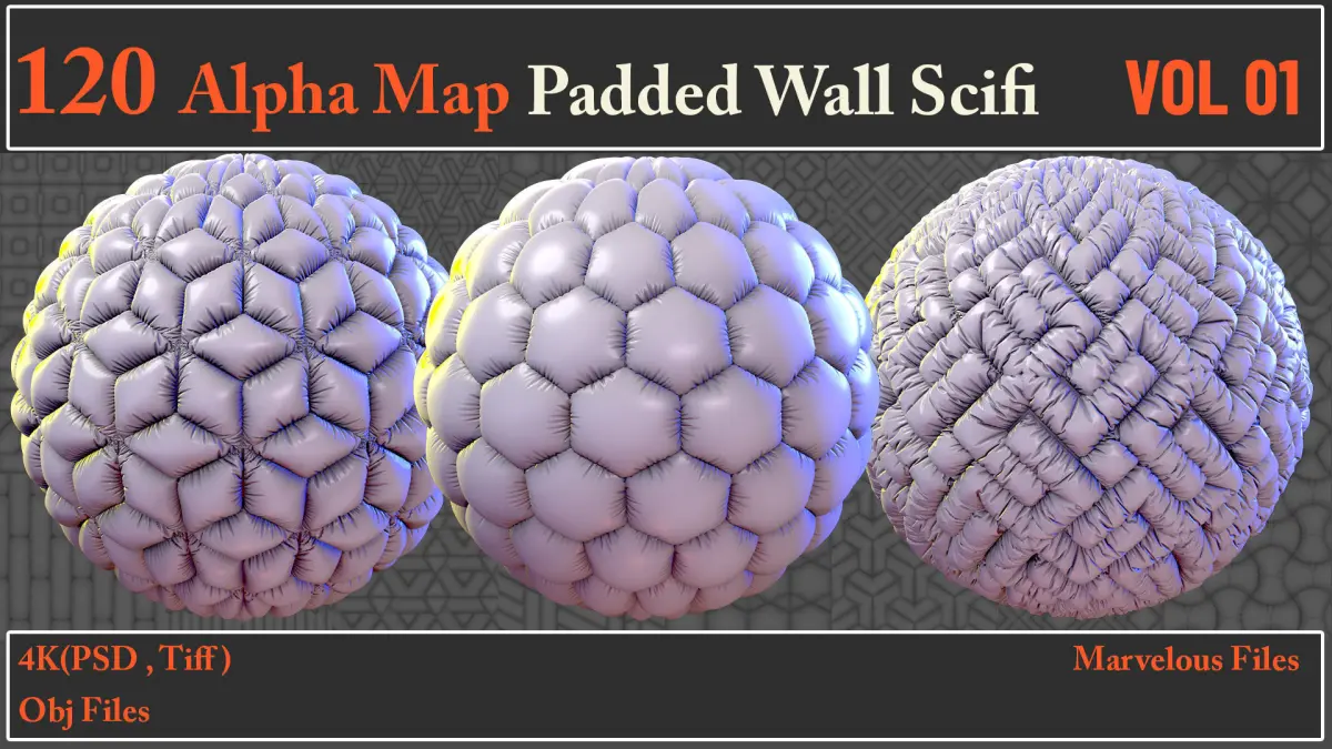Here is a set of 120 Alpha Map Padded Wall SCIFI VOL 01.