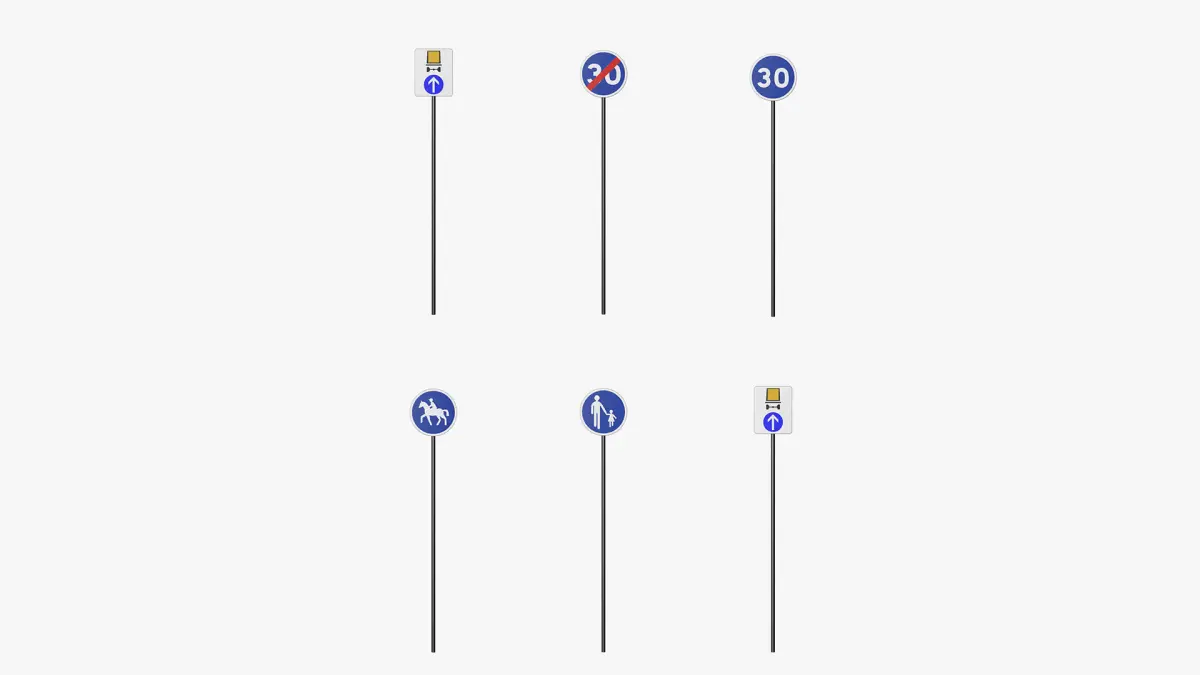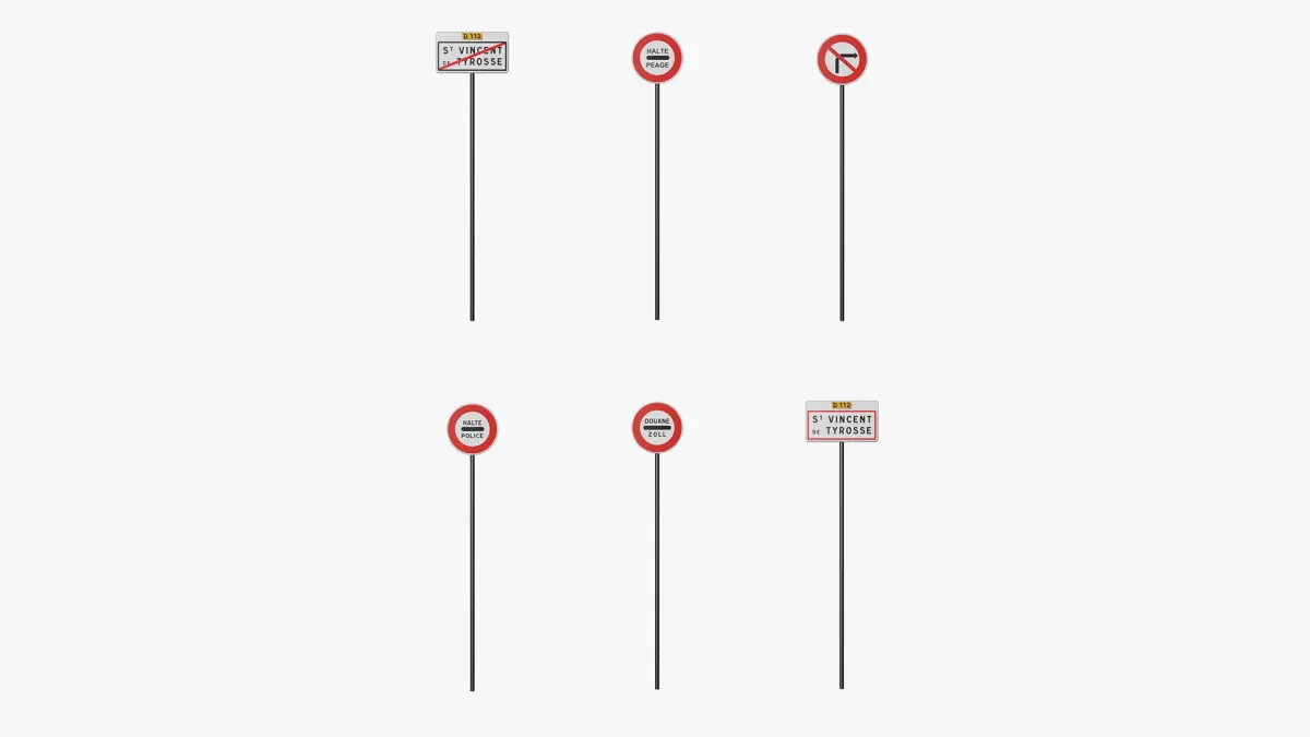 This pack included 120 low-poly 3D model of France road signs.