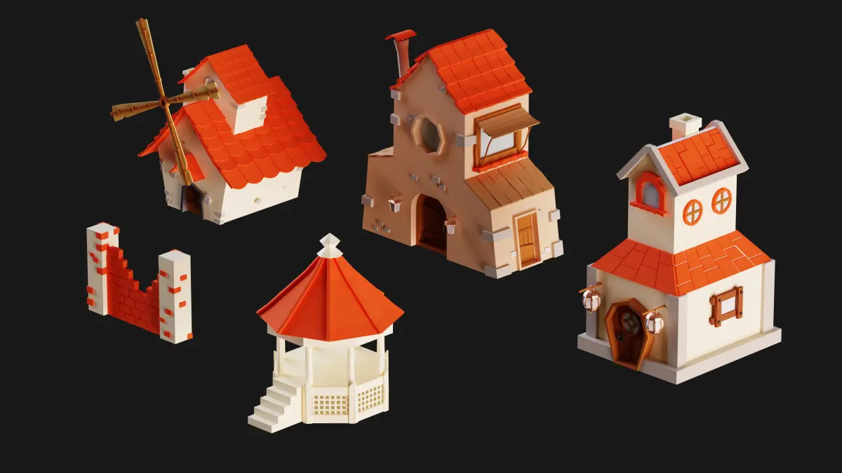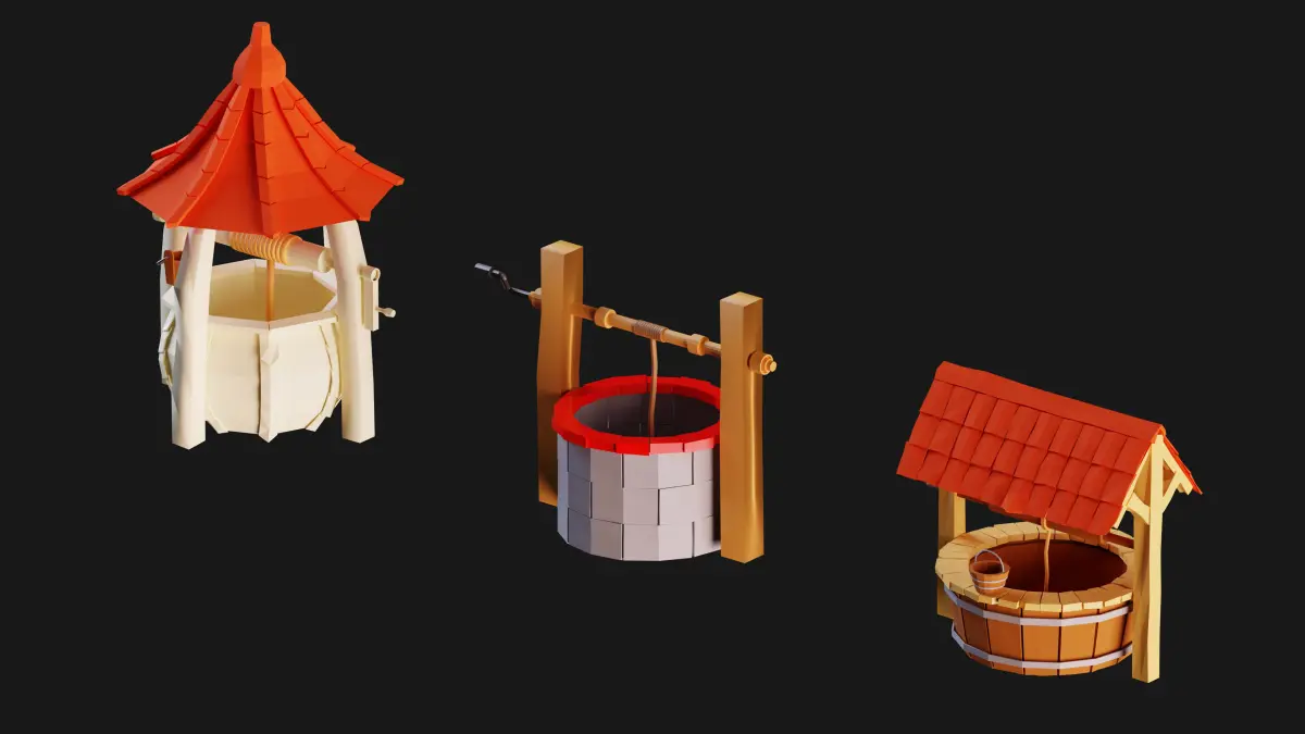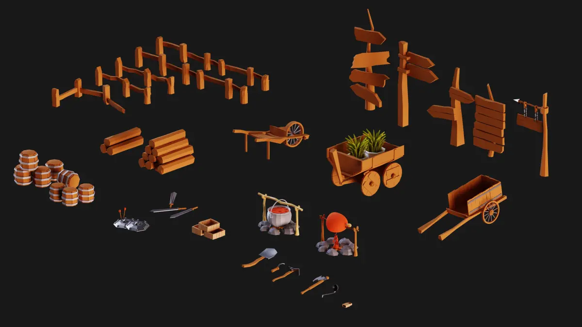 10 meticulously modeled cottages, each with its unique charm and character.3 charming water wells to add an authentic touch to your village scene.10 realistic stones and rocks, perfect for landscaping and scene embellishment.13 finely crafted trees and trunks to create a lush and natural environment.3 types of plants to enhance the greenery and beauty of your village.3 gharry models, adding a touch of tradition to your scene.5 rustic tables for outdoor gatherings and scenic charm.5 rolling hills to create varied terrain and elevation.2 lighting fixtures to illuminate your village ambiance.A collection of 13 objects including a shield, sword, barrel, box, shovel, pickaxe, sickle, ax, wooden timber, fence, pot, match, wooden and metal bucket.Essential items like windows, doors, chimneys, stairs, and more to complete your village setting.As a special gift, we've included a 102-minute modeling tutorial in the popular Blender software, teaching you how to create three essential models: 2 charming cottages and 1 enchanting water well.
