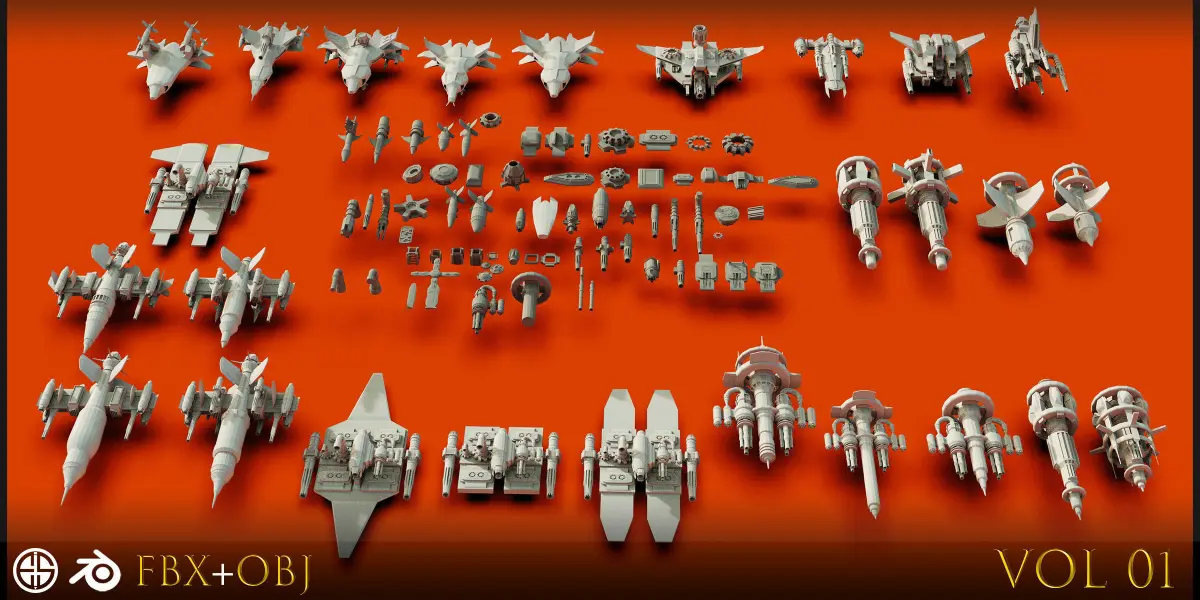 •- Model of Spaceship – Sci-Fi – Kitbashing Model•- This product will speed up your project. Take the modeling process out of your way. Customize models and increase polygons using ready-made spaceship parts inecessary.•- Only the buyer can use this product. Sharing and selling the product is prohibited.•- Can be used in all software and versions•- Model information•- 1- Low polygon models and Base mesh- Each model has less than 10K topology•- 2- Excellent topology•- 3- Ready to increase the polygon count•- 4- Ready to use for texturing•- 5 - FBX - OBJ - Blender - Molder Molds Ready•- 6 - Apply custom changes to models•- 7 - Can be used in game, film and animation creation•- 8 - Use for 3D printing•- 9 - Suitable for teaching and learning textures•- 10- Suitable for teaching retopology and UV•- Your purchase helps to produce more products of Ehsan salari page, please introduce my page to your friends.•-thanks•-This is my email and YouTube address:•- Email: design.ehsan.salari@gmail.com•- https://www.youtube.com/@Ehsan_Salari_1992/videos