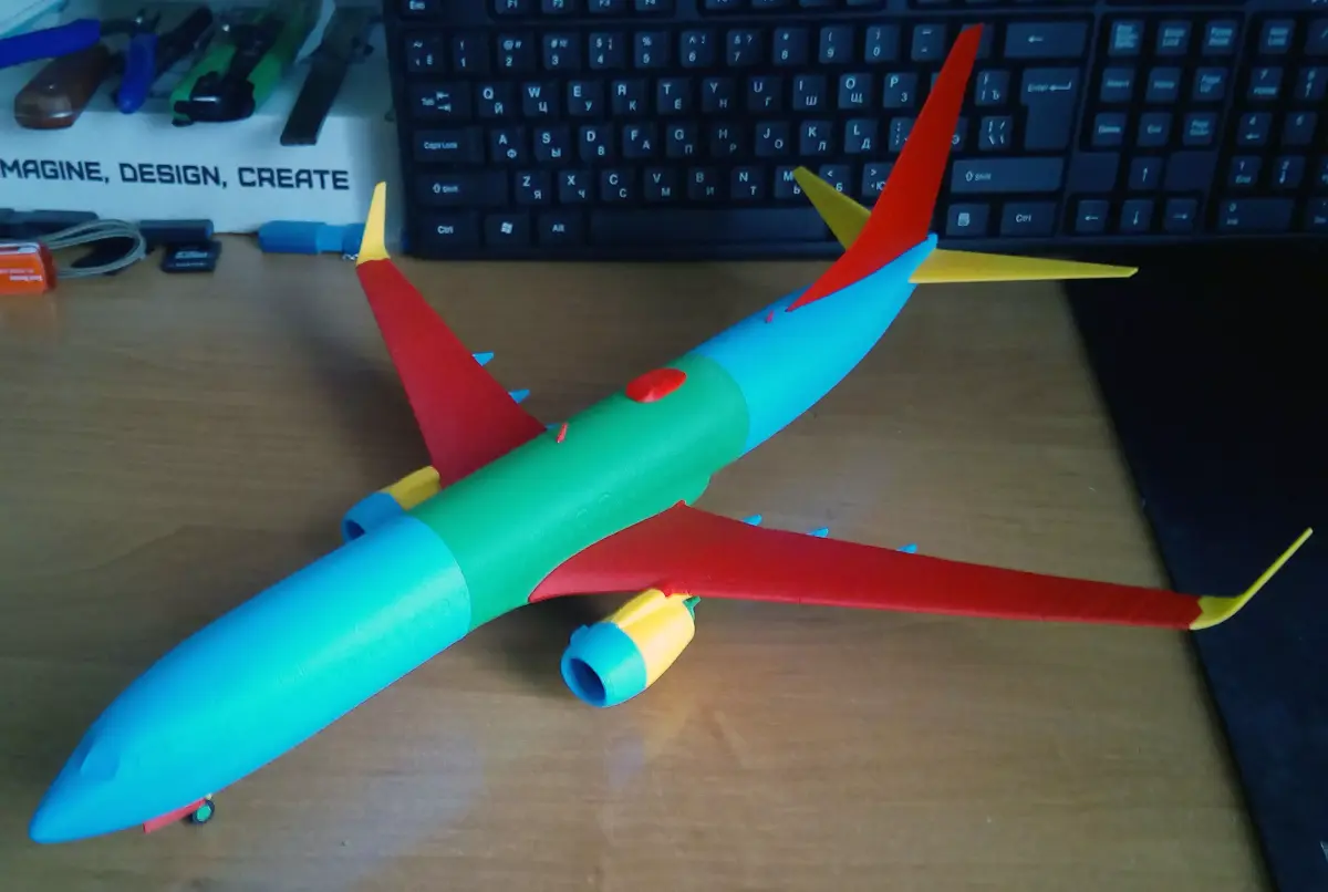 The detailed 3D printable model kit of 737-800 in 1/100 scale. Model has designations of doors, windows, air intakes, high-lift devices and many separate parts. The model requires gluing. 3D Printing Guidelines and Assembly Instructions are included.