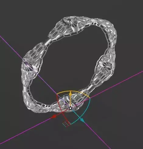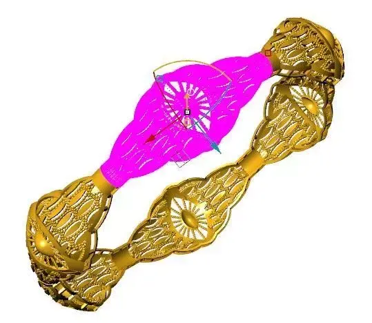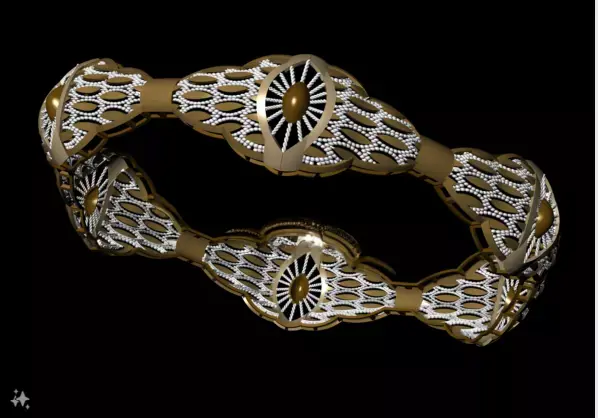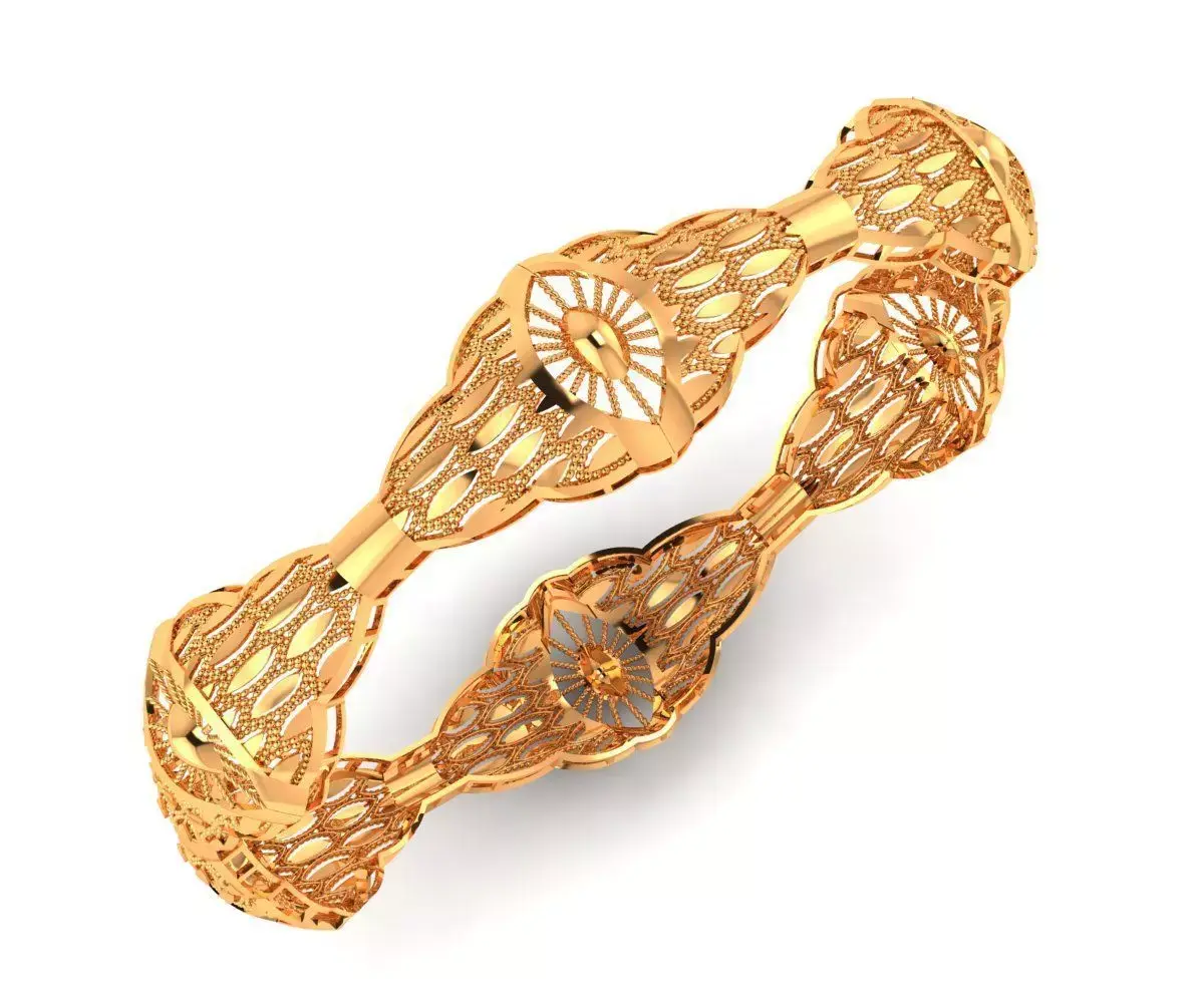 This bangle features a modular segmental design, composed of repeating units that blend geometric precision with floral elegance. Each segment is intricately detailed with cutouts and raised motifs, offering a rich visual texture and luxurious appeal. The design is optimized for high-end casting and finishing workflows.
