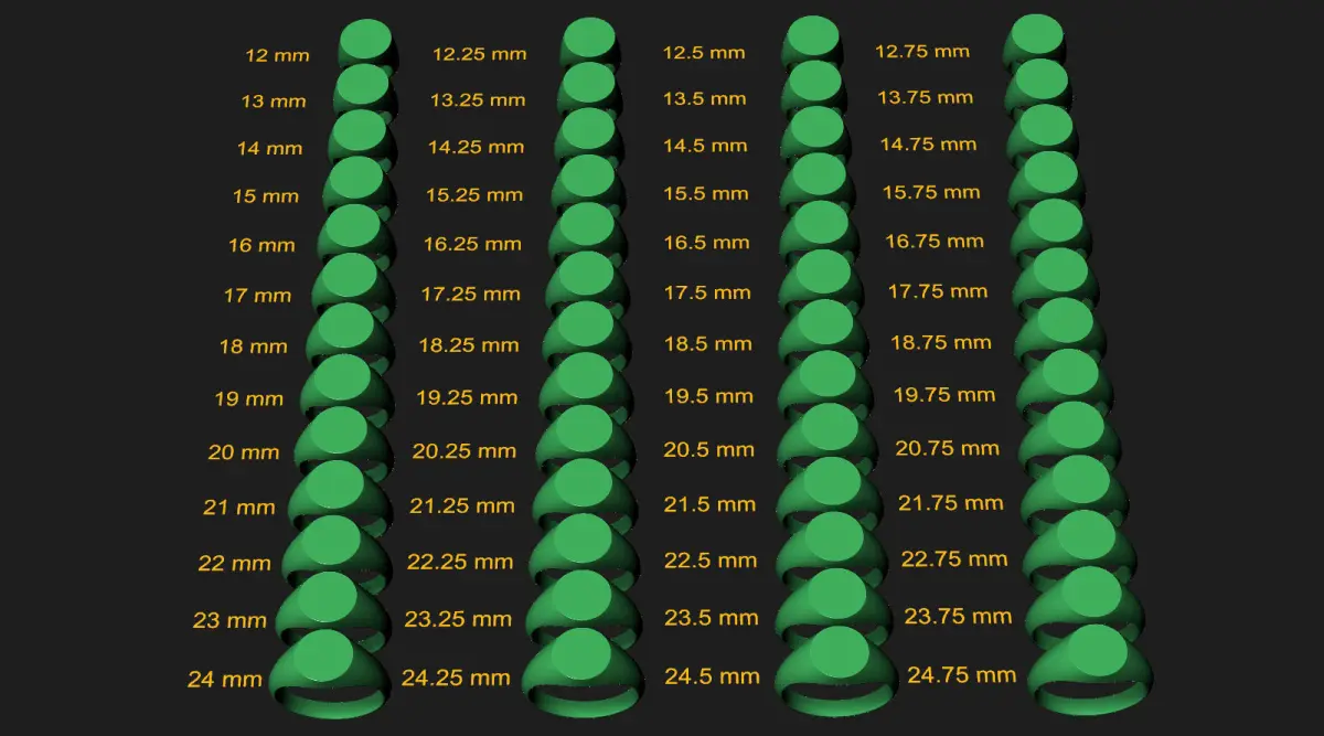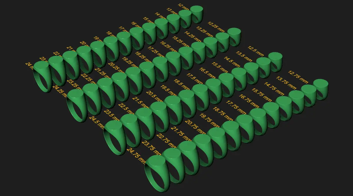 fourth .3DM file 12.75 mm - 24.75 mm (13 ring sizes)