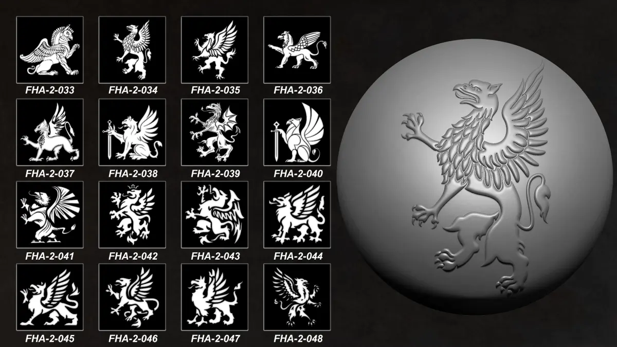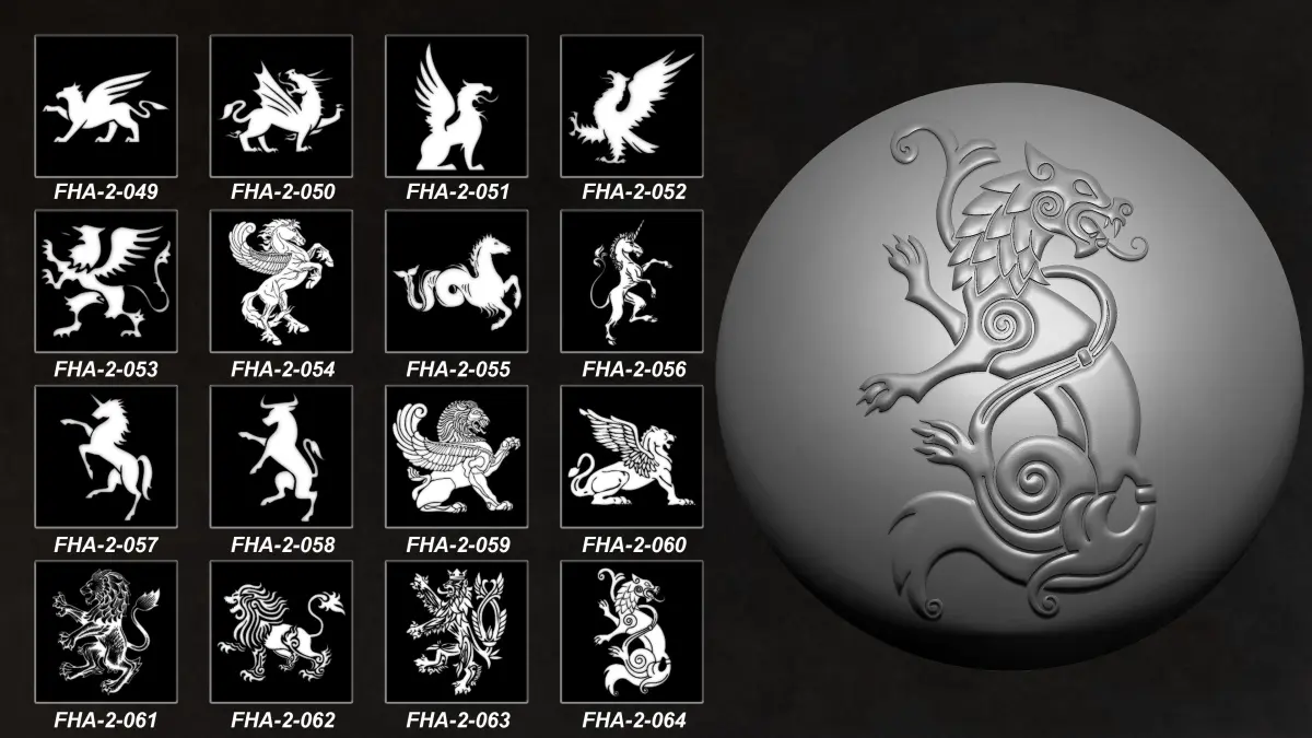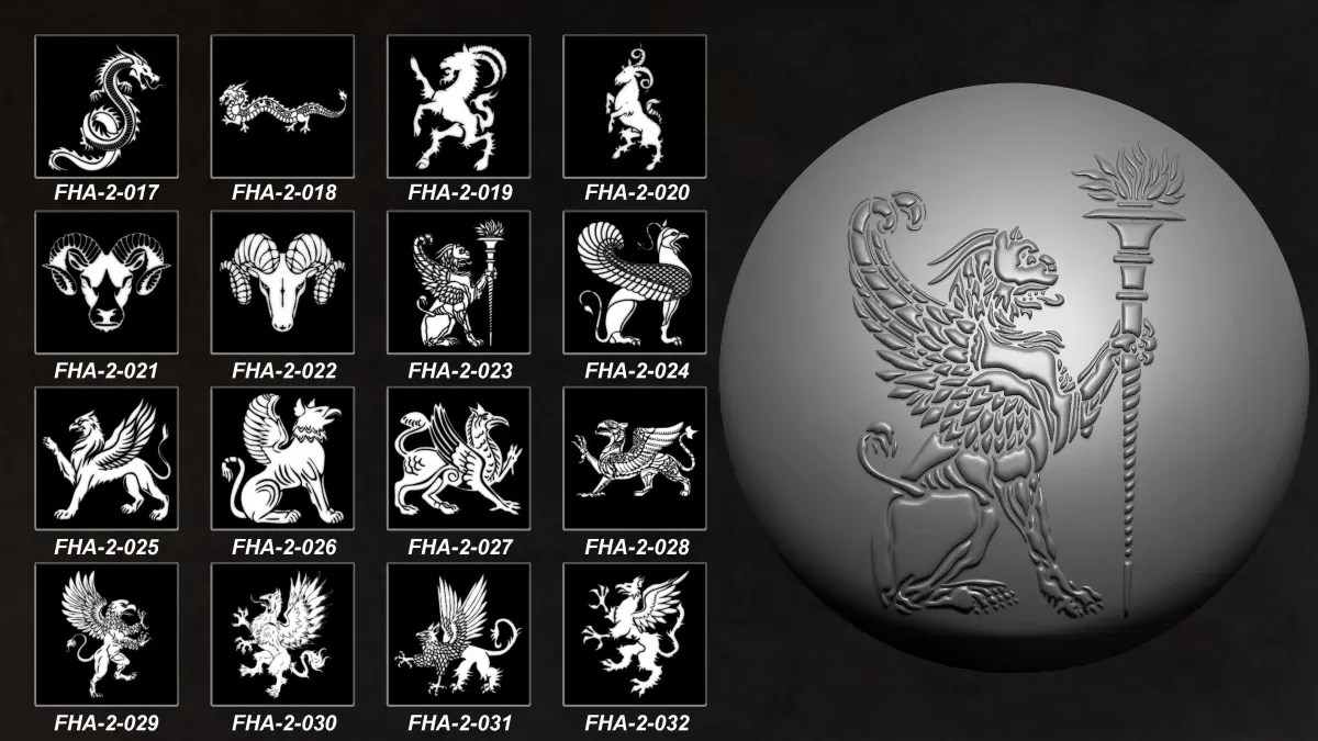 - 170 Heraldic Animals Symbols/Elements (Alpha,Brush)