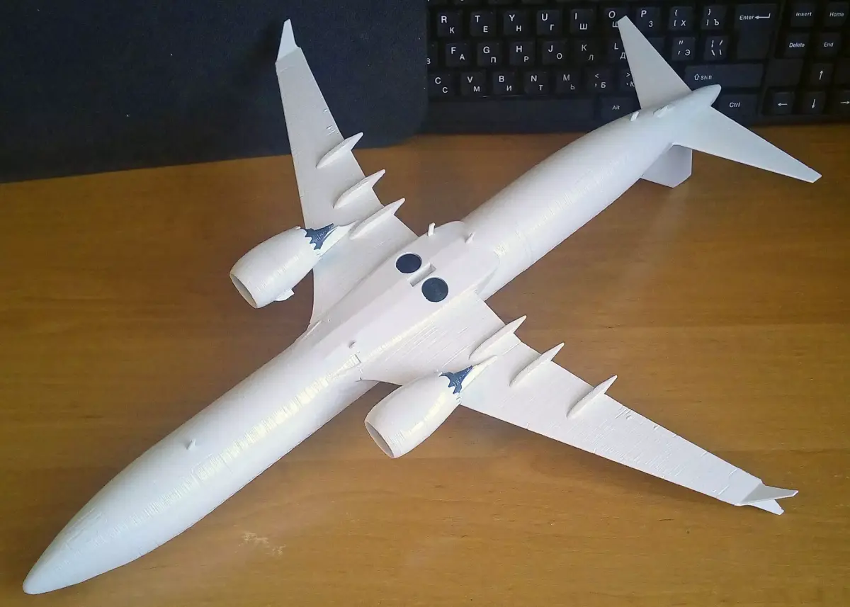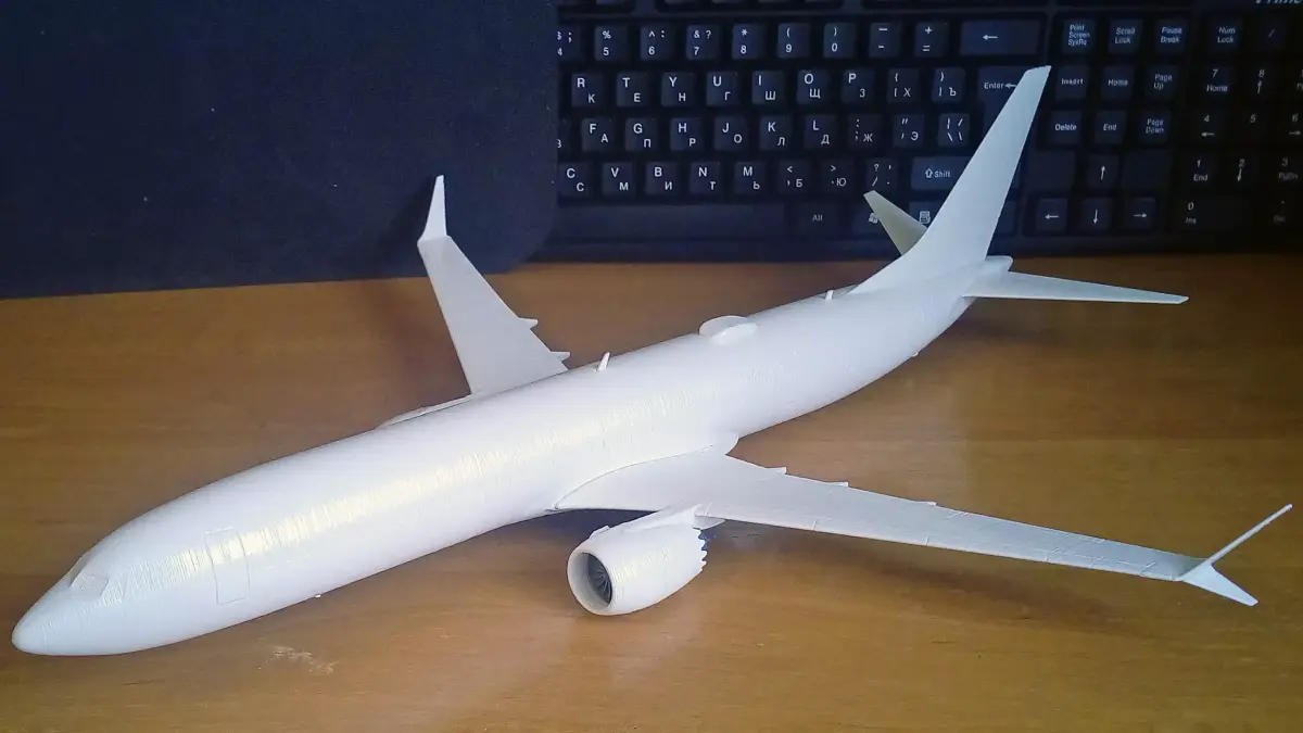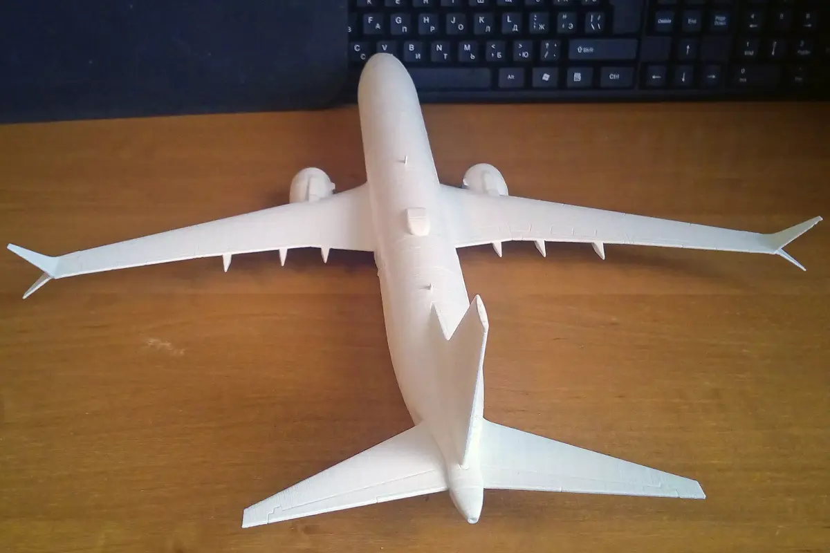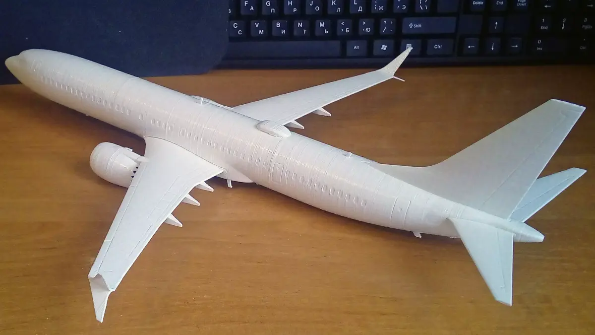 The detailed 3D printable model kit of 737-9 MAX in 1/100 scale. Model has designations of doors, windows, air intakes, high-lift devices and many separate parts. The model requires gluing. 3D Printing Guidelines and Assembly Instructions are included.