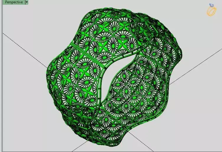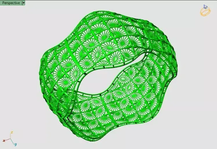 This sculptural bangle features a toroidal silhouette inspired by Möbius geometry, offering a seamless, continuous loop that symbolizes infinity and elegance. Crafted in high-polish gold, the surface is adorned with a precision-engineered lattice of circular and starburst motifs, creating a visually rich interplay of light and shadow. The hollow structure enhances wearability while maintaining structural integrity, ideal for lightweight yet bold statement pieces.