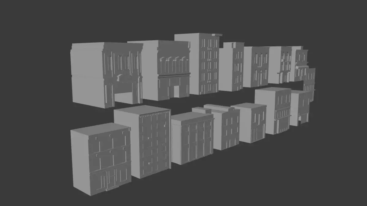 14 Low Poly Downtown Buildings Low-poly 3D model