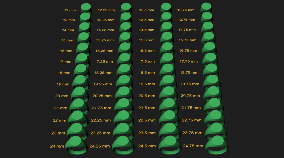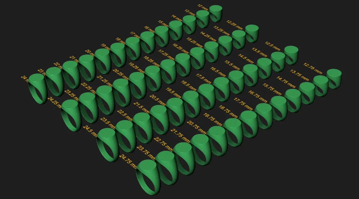 fourth .3DM file 12.75 mm - 24.75 mm (13 ring sizes)
