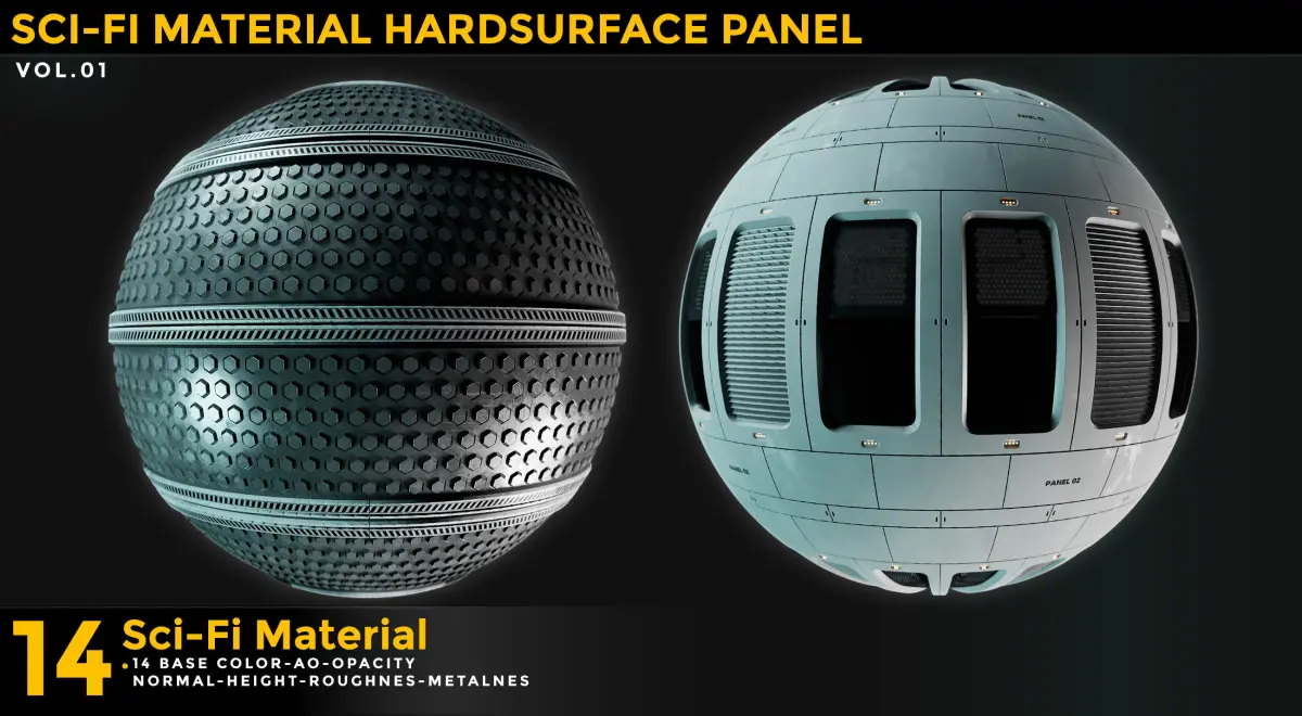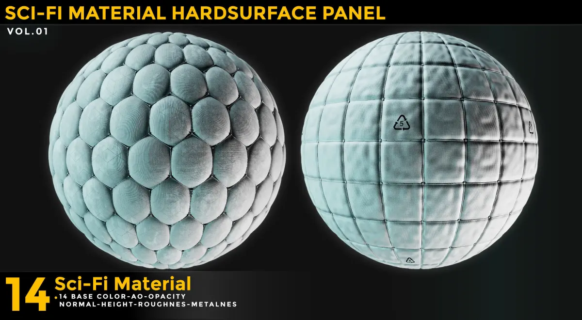 14 4K sci fi PBR Textures( 4096x4096)This Product includes 14 sci fi Materials for Substance designer and 4K PBR texture. You can use the PBR Textures for any program that works with PBR workflow!