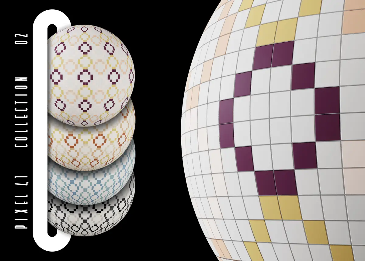 This product contains 141 textures of PBR tiles from 41zero42 products. In this collection, there are 25 different patterns from the Pixel 41 collection in 4 colors.
