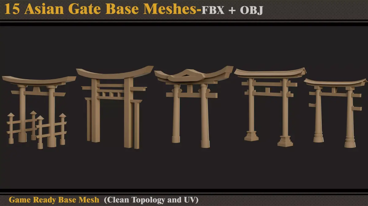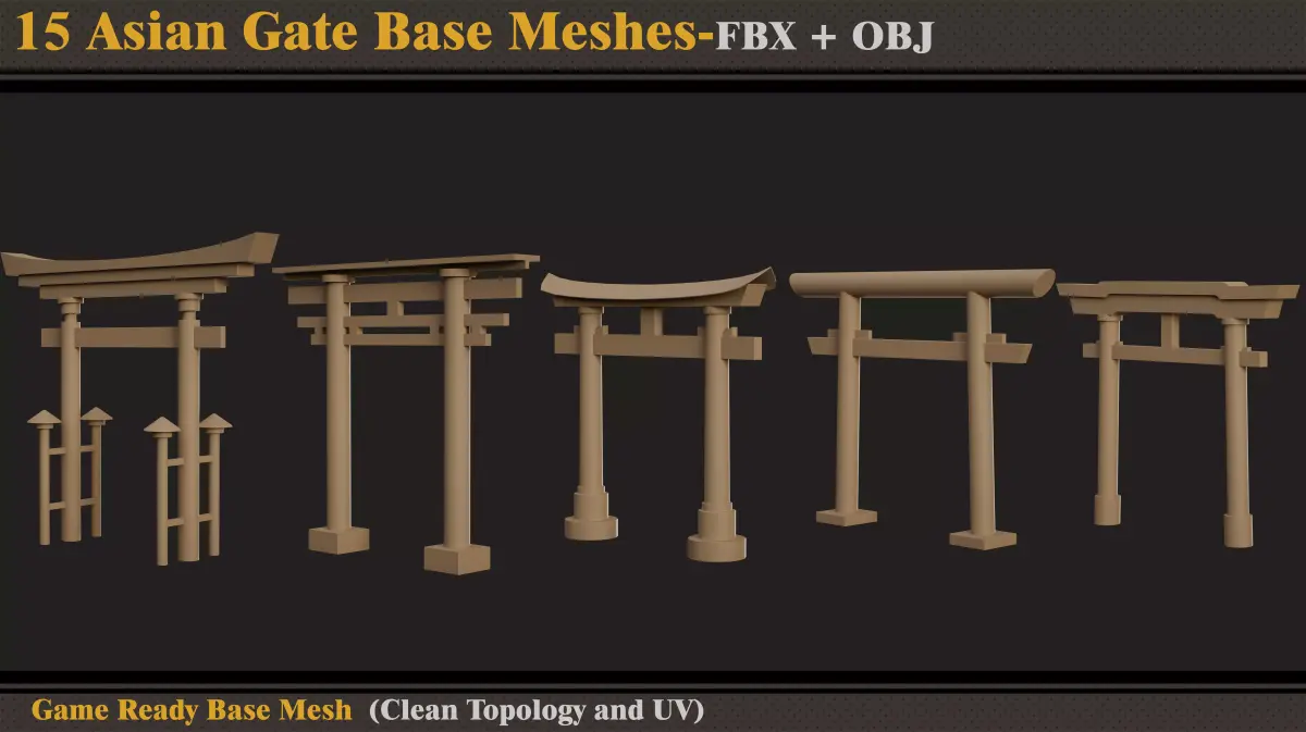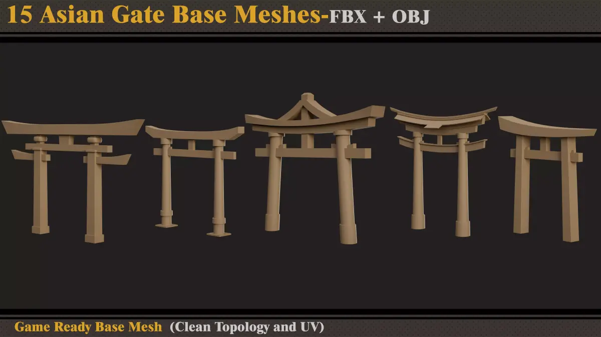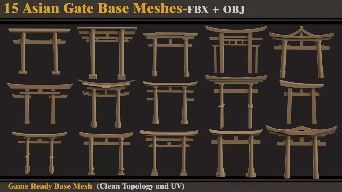 Hello ;)This product contains 15 Asian gate base meshes.In each file, there are: