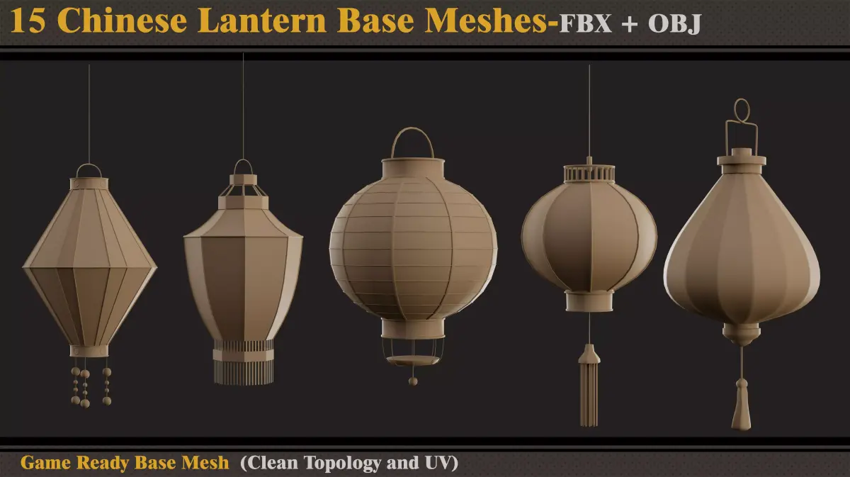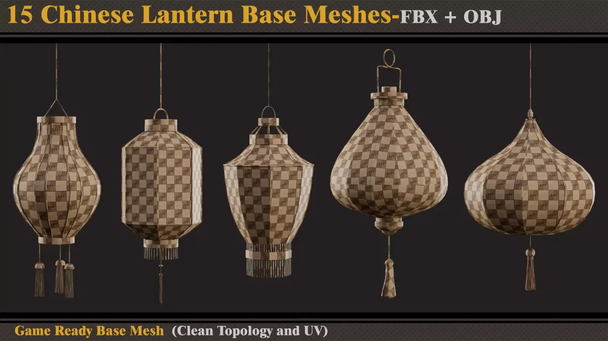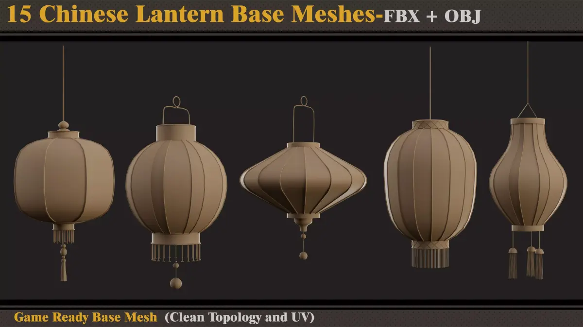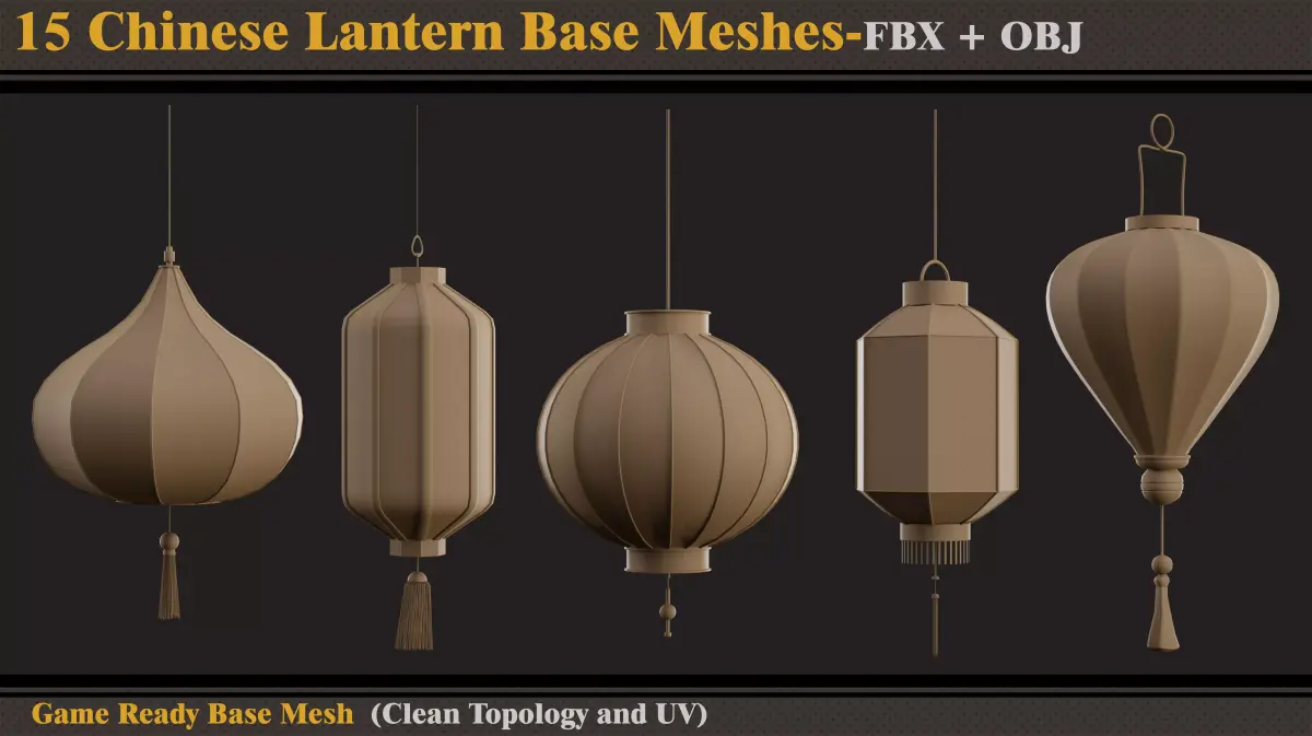 Hello ;)This product contains 15 Chinese lantern base meshes.In each file, there are: