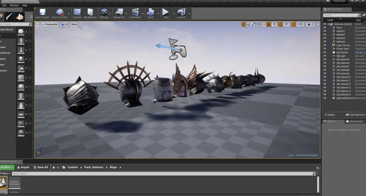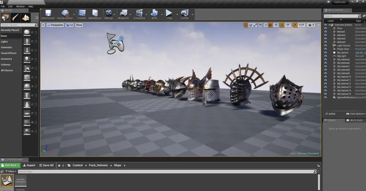 This pack of helmets can come in handy for your gaming or other projects. The polygon of each helmet is no more than 3000 triangles. 2k texture pack for each helmet: Diffuse, Normal OpenGL, Normal DirectX, Metallic, Roughness. The helmets are in .FBX format and embedded in the 3D editor BLENDER (Asset Browser). Also implemented in the UNREAL ENGINE game engine.