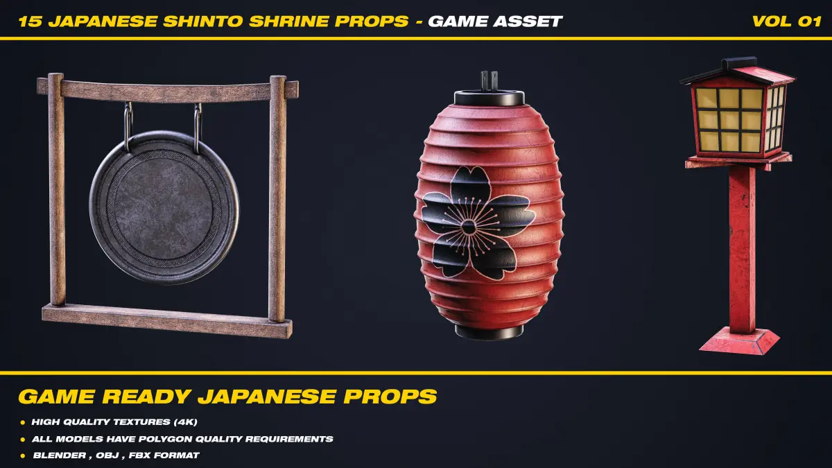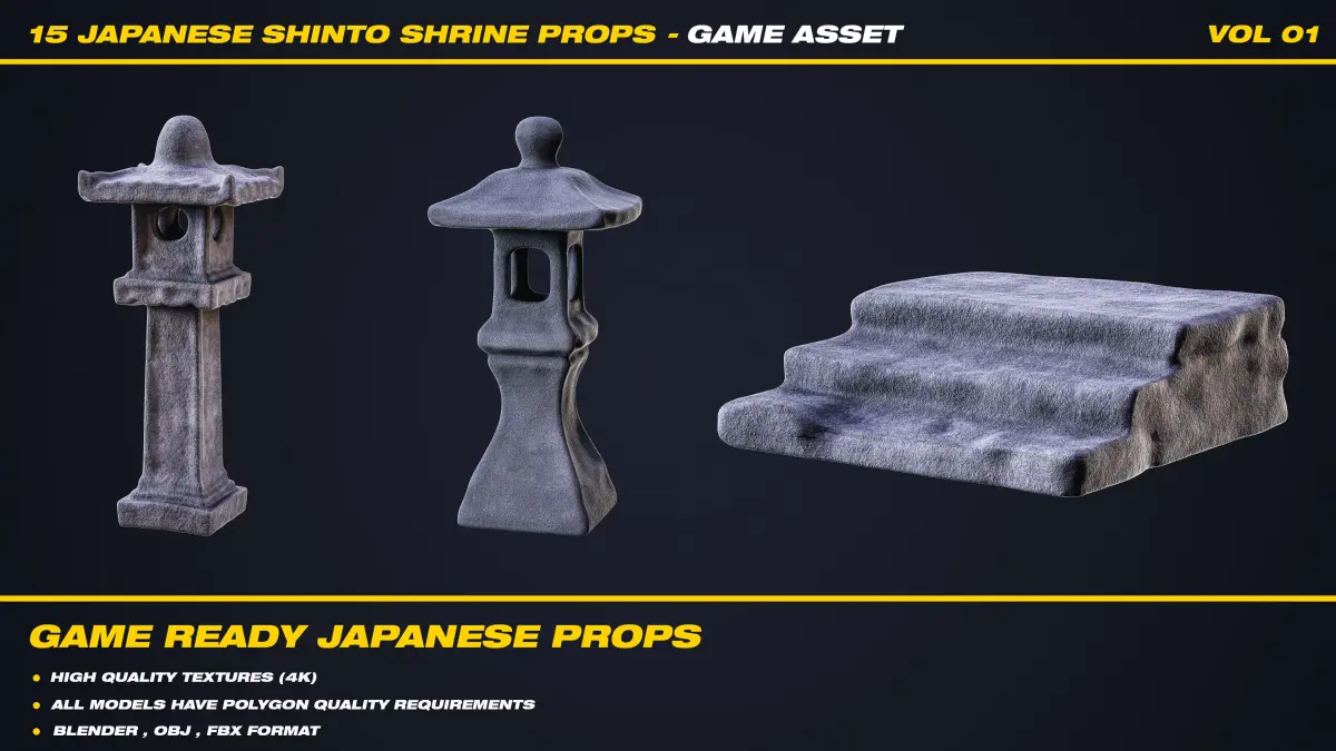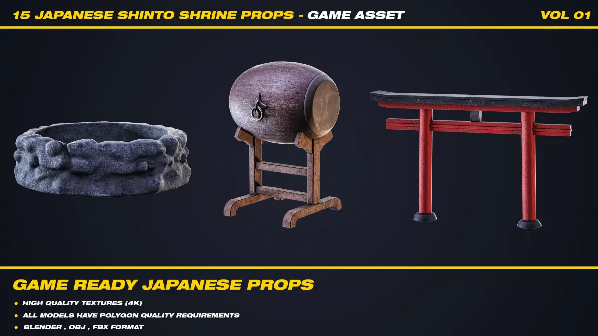 Bring authentic Japanese Shinto spirit to your game environments with this high-quality 3D asset pack. This collection features 15 unique, handcrafted models inspired by traditional Shinto culture, designed for immersive and atmospheric scenes.