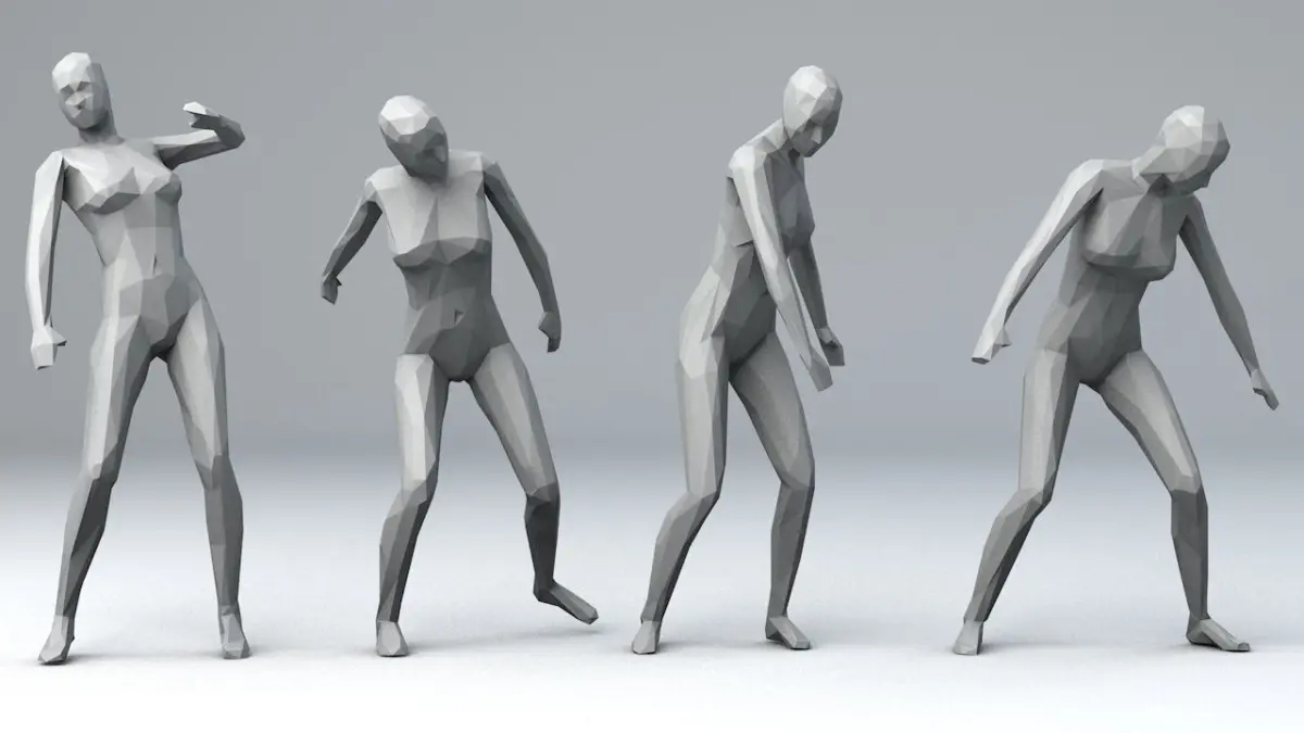 - 15 lowpoly women sport fitness dance activity poses 3D models bundle
