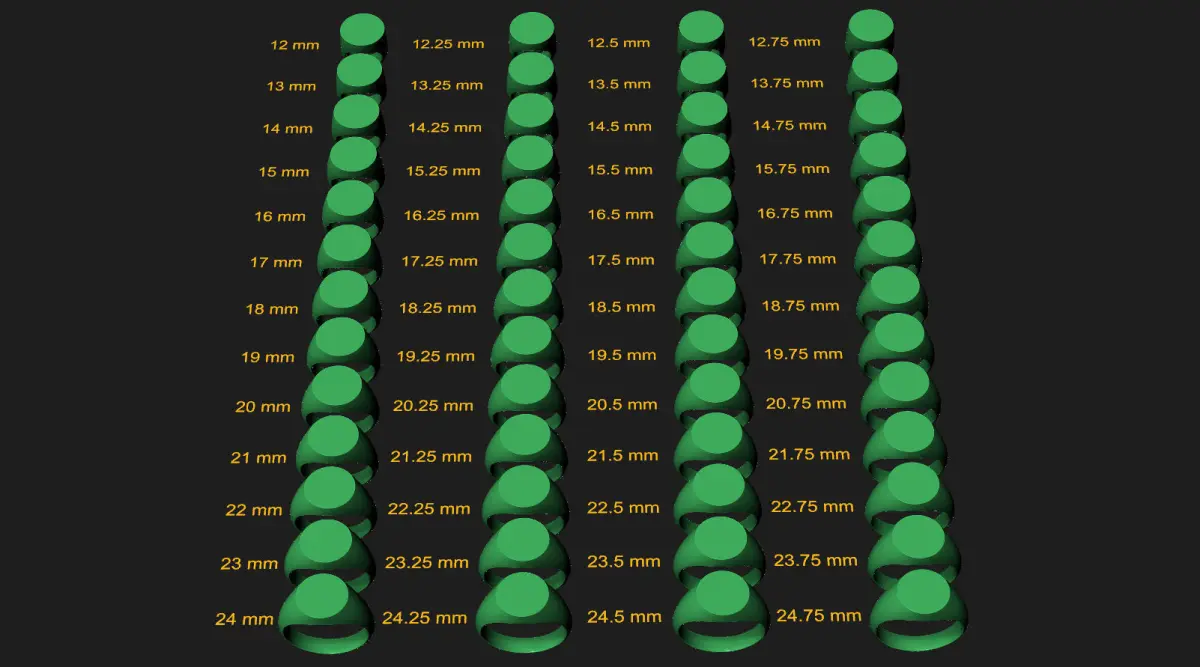 fourth .3DM file 12.75 mm - 24.75 mm (13 ring sizes)
