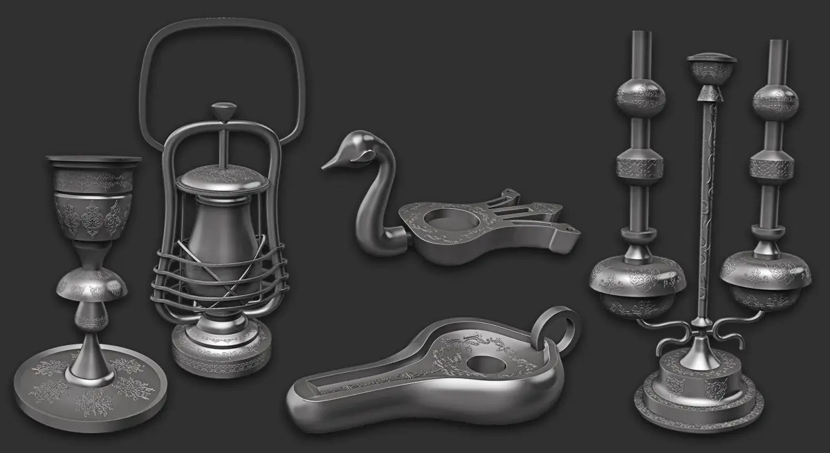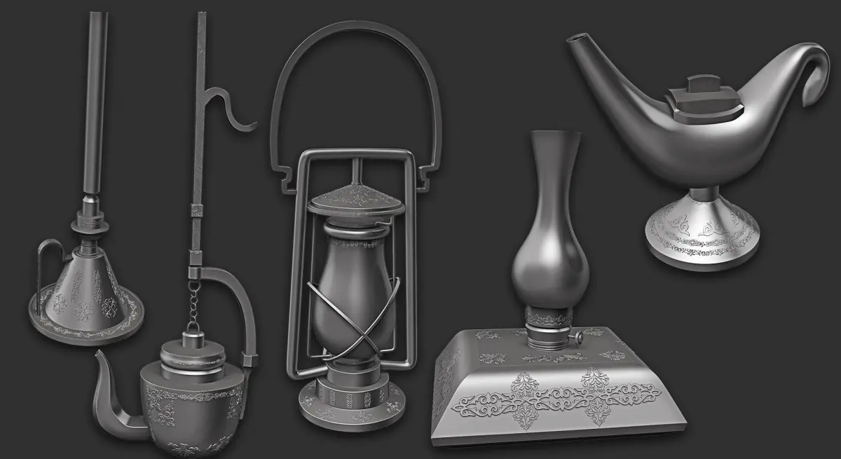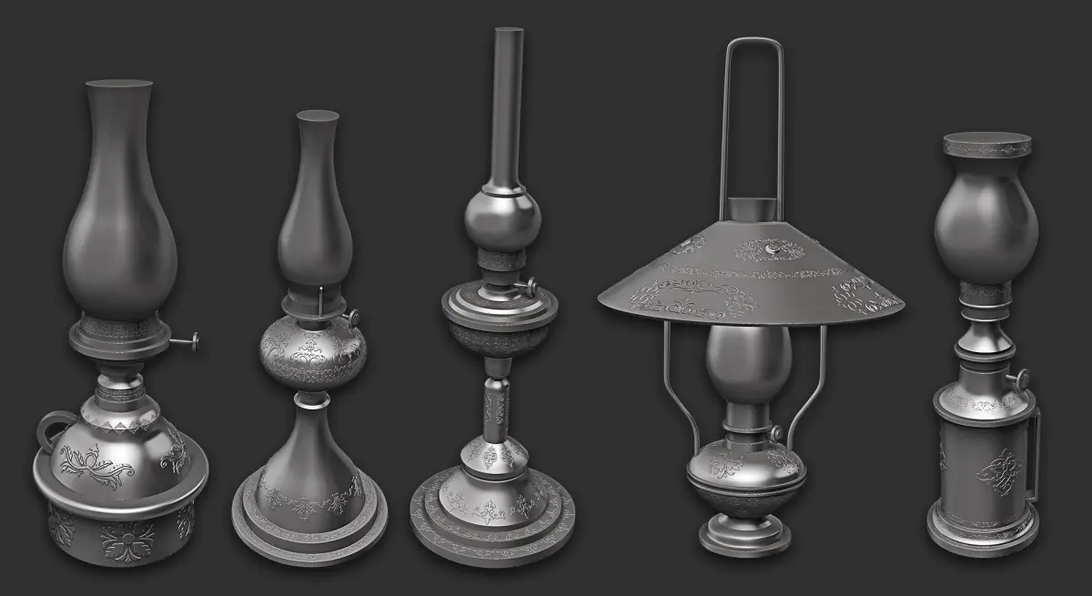This pack includes 15 oil lamp 3d models as a low and high mesh to add more detail in your 3d projects.