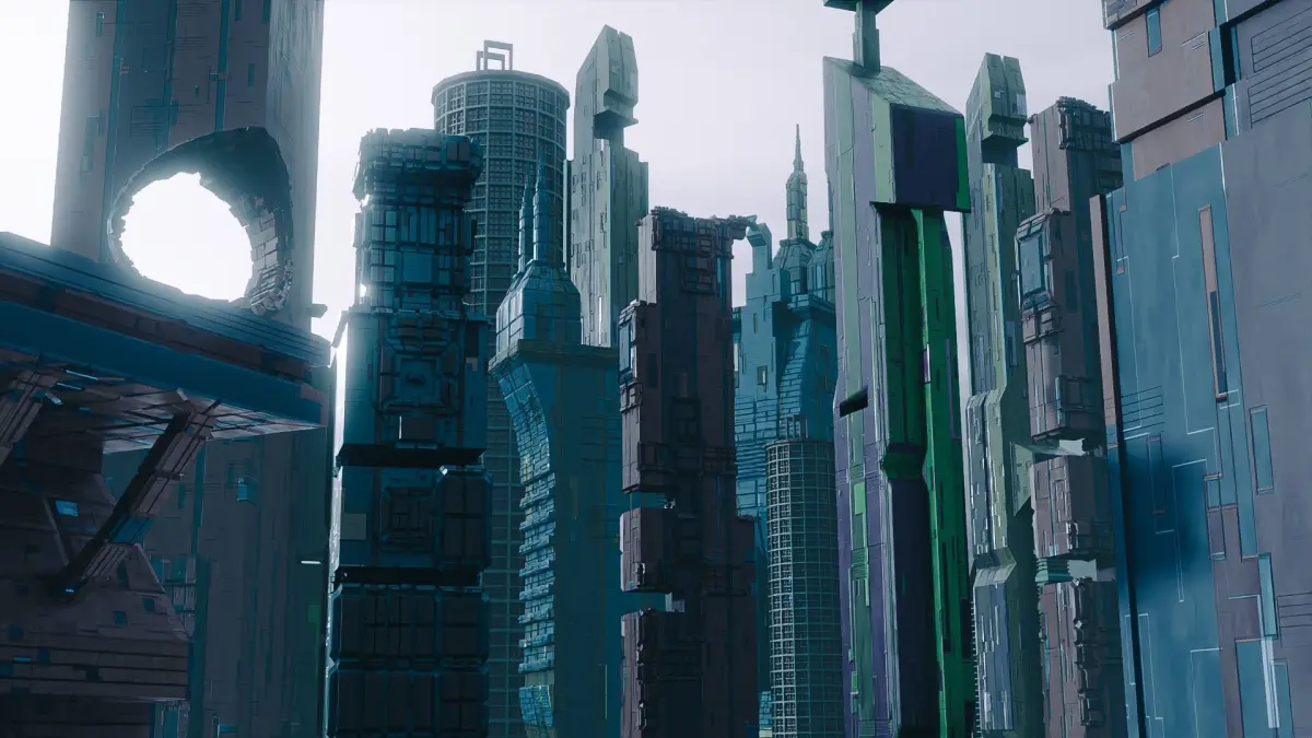 This pack has 15 sci-fi high-detail buildings with a city generator and sci-fi procedural material.
