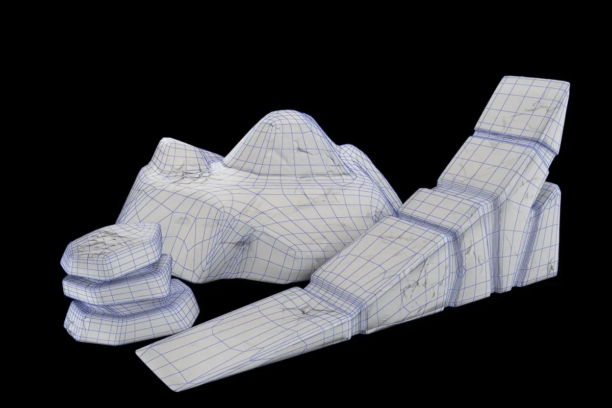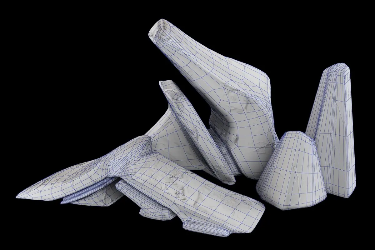 Rock 01: 558 polys, Rock 02: 772 polys, Rock 03: 399 polys, Rock 04: 538 polys, Rock 05: 418 polys, Rock 06: 602 polys, Rock 07: 841 polys, Rock 08: 272 polys, Rock 09: 477 polys, Rock 010: 272 polys, Rock 011: 416 polys, Rock 012: 596 polys, Rock 013: 252 polys, Rock 014: 136 polys, Rock 015: 130 polys.