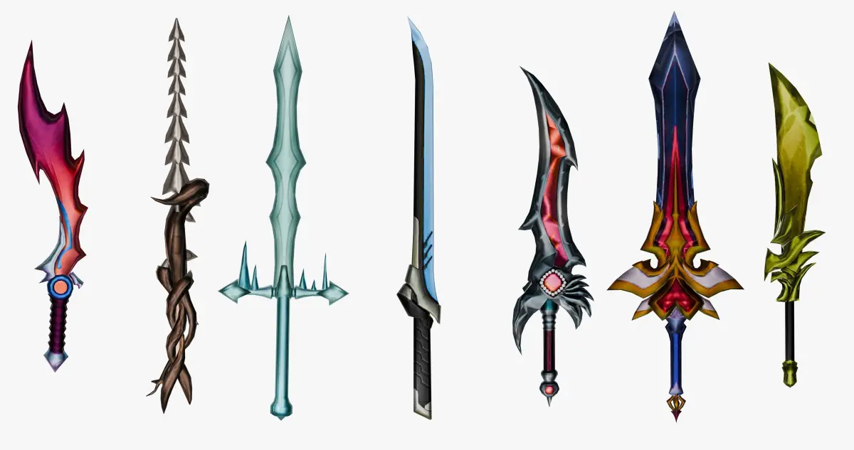 **Models designed and rendered in Blender 4.0These are 15 different Low-Poly sword models(Including the sword holder seen in the photos) .