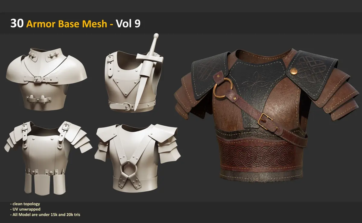 Looking to speed up your workflow and take your projects to the next level? This premium collection of high-quality leather armors is exactly what you need! Designed with exceptional detail and top-tier craftsmanship, this bundle offers a complete and versatile set of leather armor assets, perfect for game development, animations, and 3D renders.