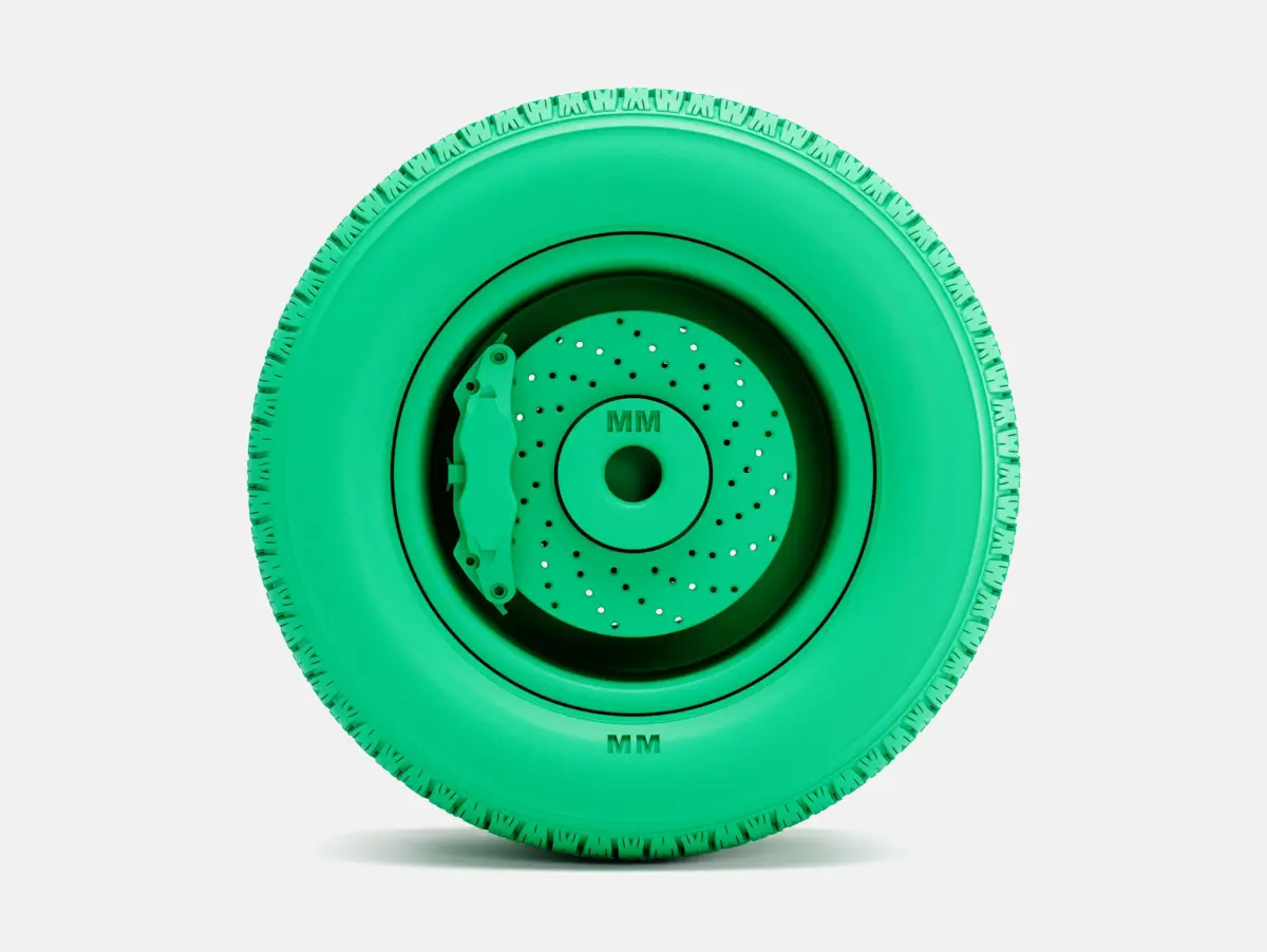 Separated wheel, tire, and brake
