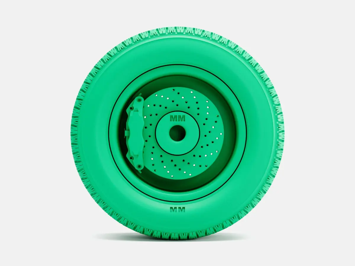 Separated wheel, tire, and brake
