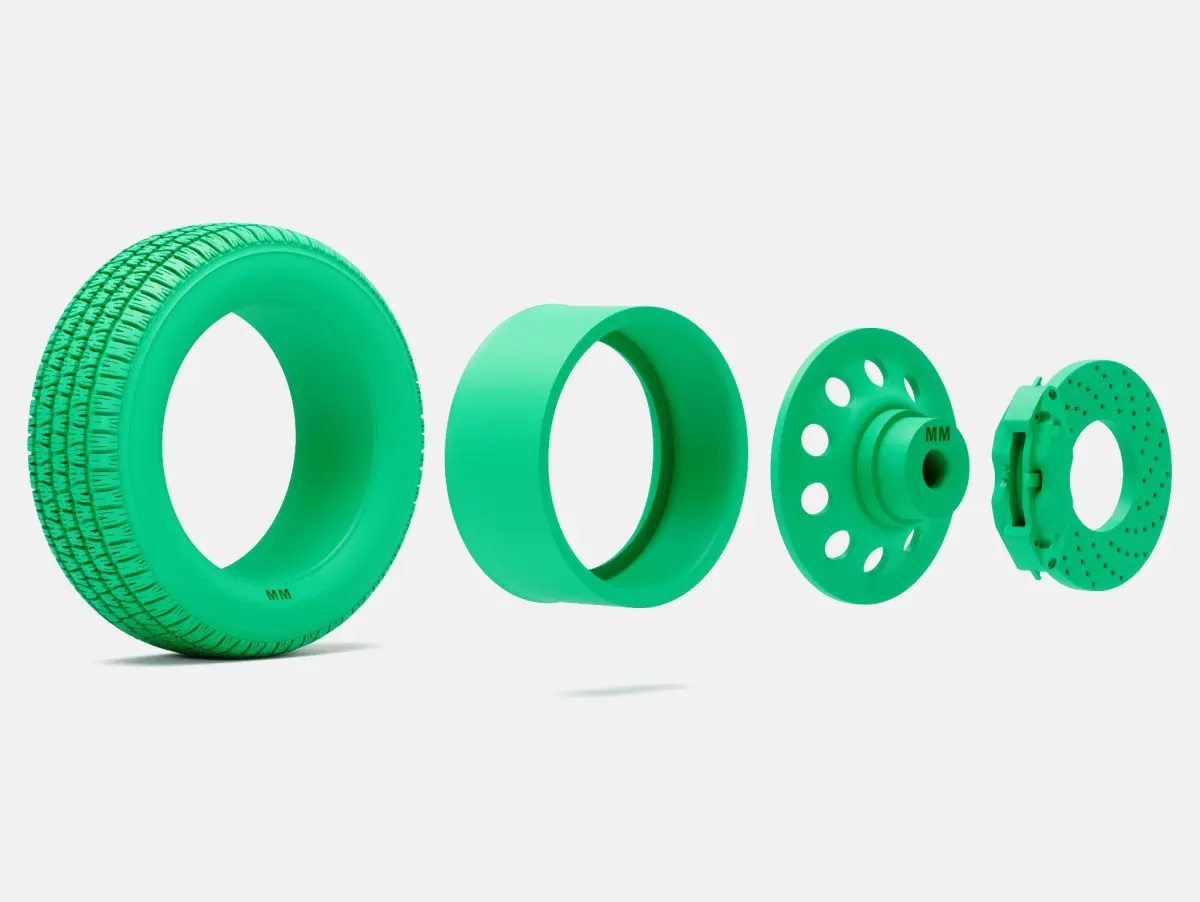 Separated wheel (2 piece), tire, and brake