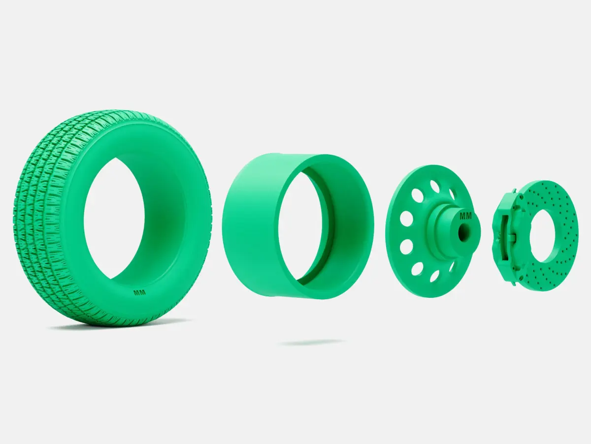 Separated wheel (2 piece), tire, and brake