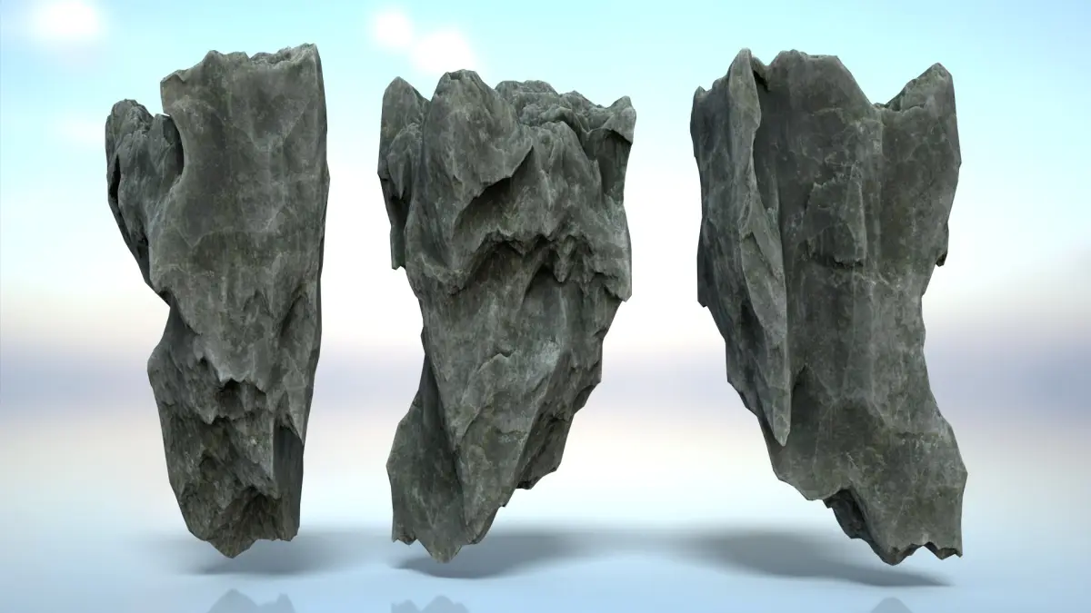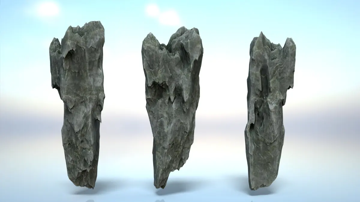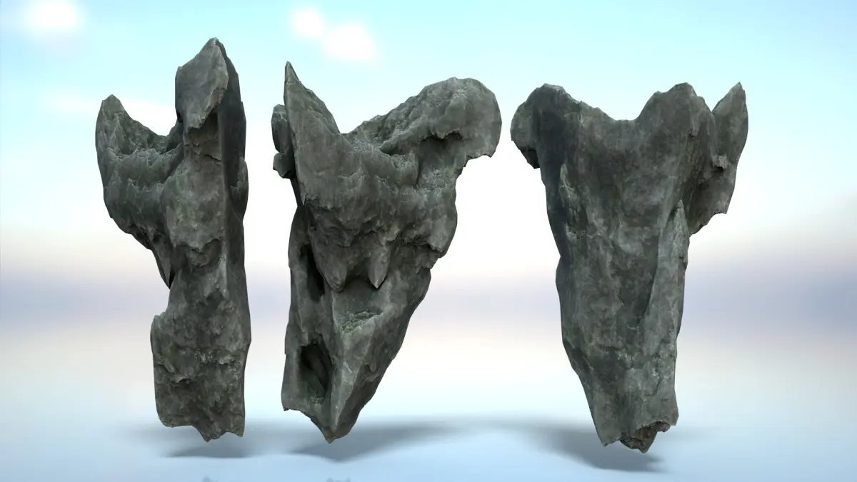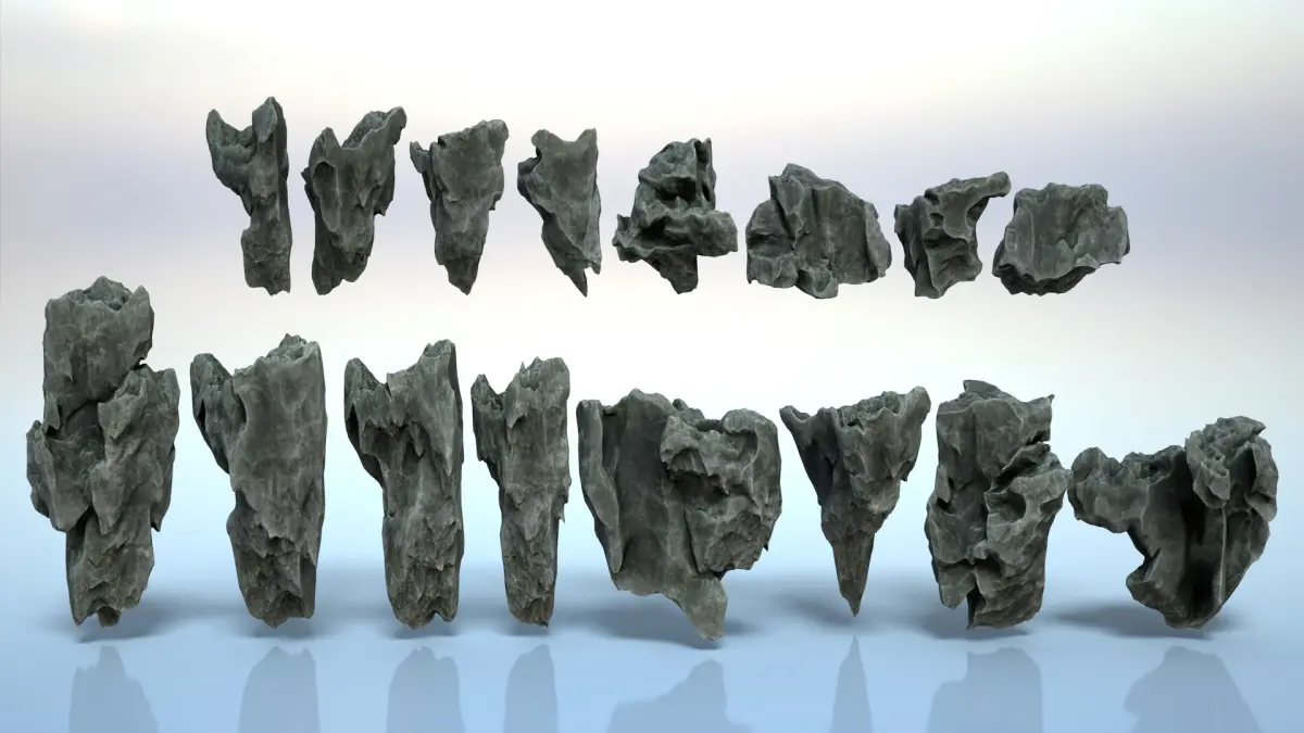 The product includes 16 Erosion Cave Rocks. The details of the model are depicted in all different angles, so you can replicate them, then rotate, flip, scale to combine them and create a variety of shapes.