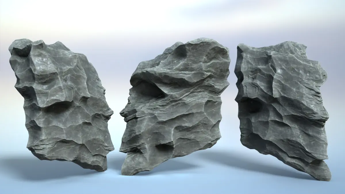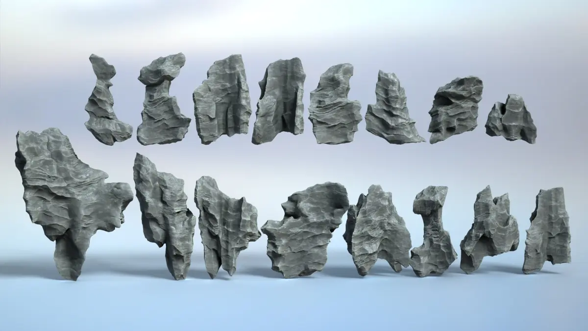 The product includes 16 Erosion Cave Rocks. The details of the model are depicted in all different angles, so you can replicate them, then rotate, flip, scale to combine them and create a variety of shapes.