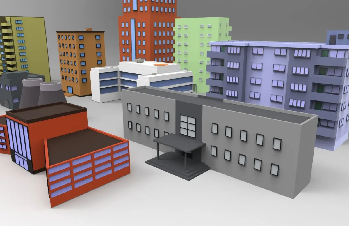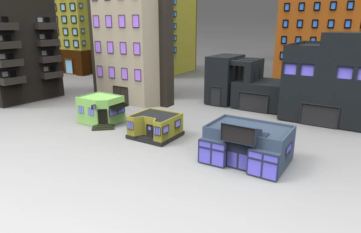Easy to render, suitable for games etc. Easy to put in your city scene.