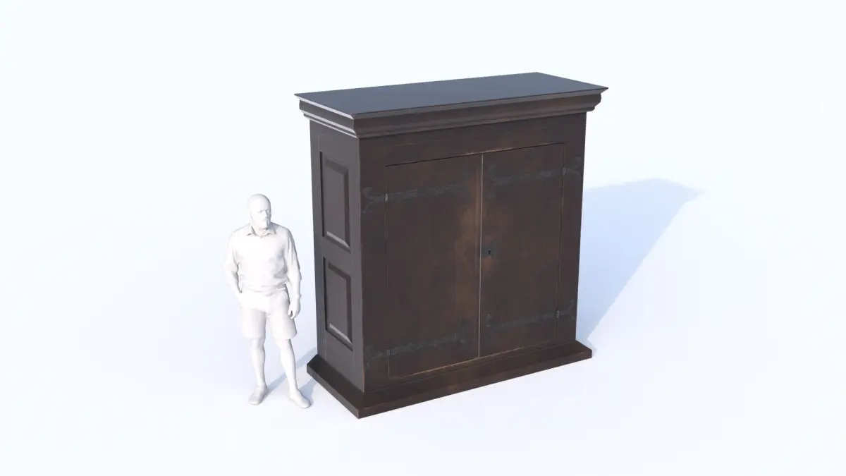 Low-poly historical reconstruction of 15th to 17th century massive cabinet from a castle’s armory. Made from strong wooden boards. Equipped with metal fittings and a bit of decoration on the sides. The closet is 2.35 x 1 x 2.4 m.