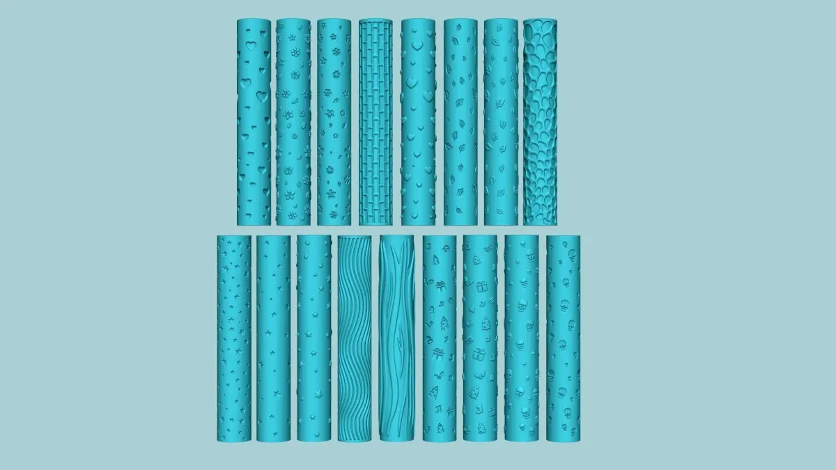 How does it work: just press the cylindrical texture roller against the material you want to apply the texture, and just roll it over and over to create an infinite texture.