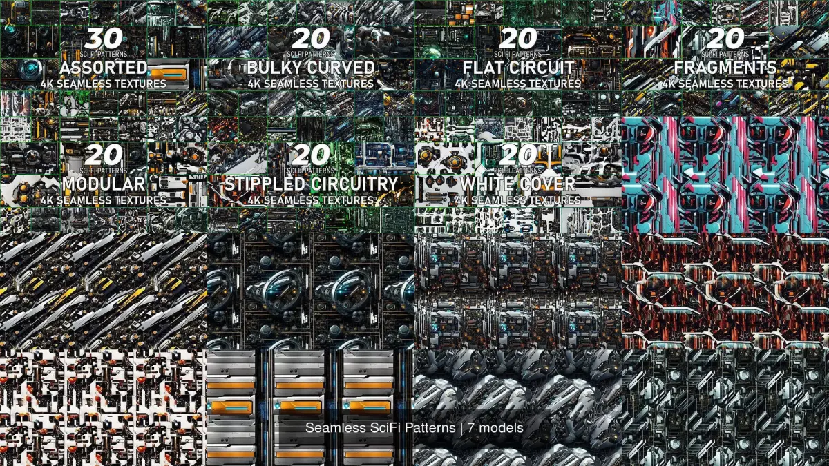 Explore the vast unknown with this texture pack tailored for science fiction patterns. This collection is meticulously curated to provide a wide array of aesthetics.