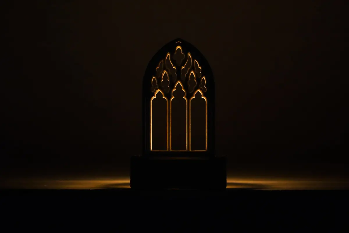 A lovely decorative accent for your desk or countertop. This miniature architectural piece will beautify your space with its shape and form and its play of light and shadow. It would make a perfect gift for a lover of architecture.A gothic window tracery model that is designed to bring a little bit of divine architecture into your home. Celebrating the beauty of the geometric patterns that adorn the beautiful Gothic architecture found in grand Cathedrals and Churches of the middle ages.