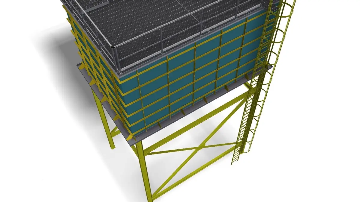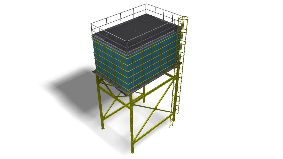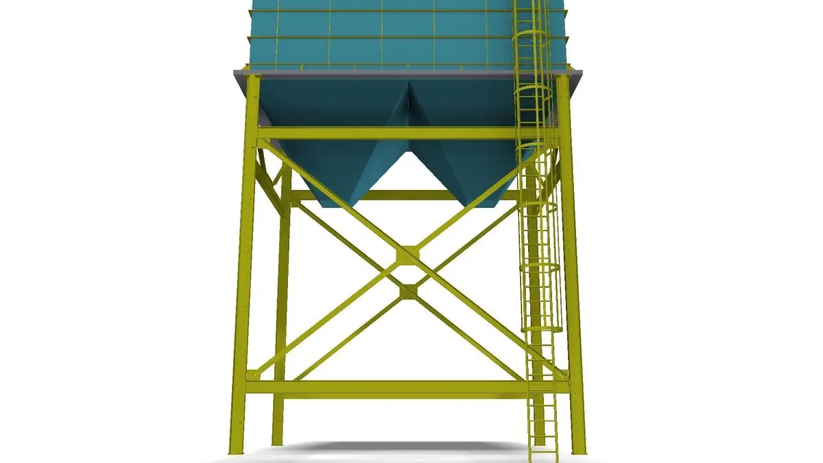 Double outlet 180 ton sand silo. Dimensions are indicated in the picture. All dimensions are modeled in 1/1 ratio so that they can be manufactured.