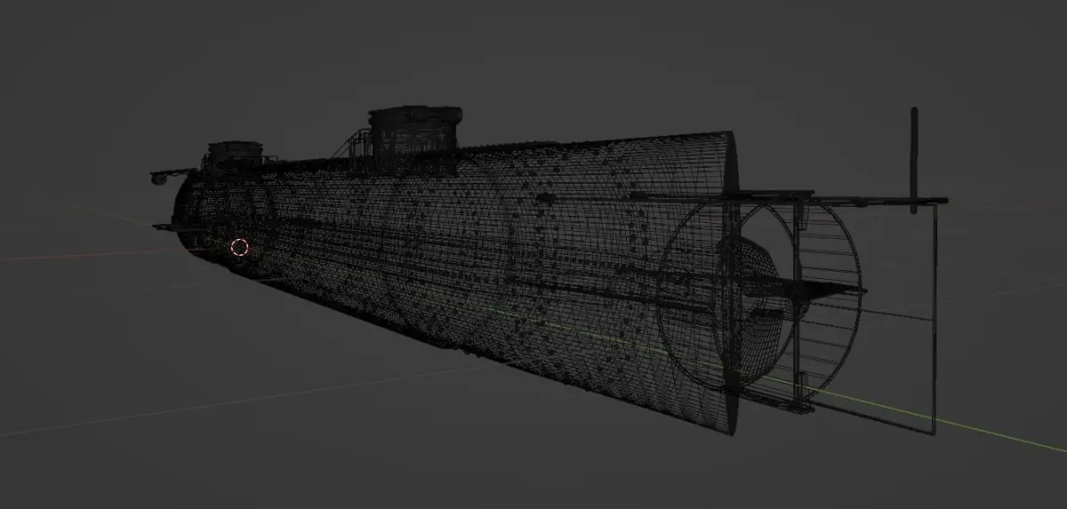 This has been modelled and textured (procedurally) solely in Blender. The model is around 17 m in length