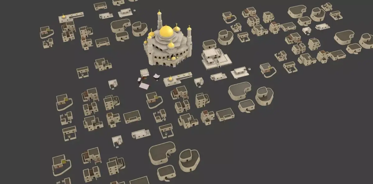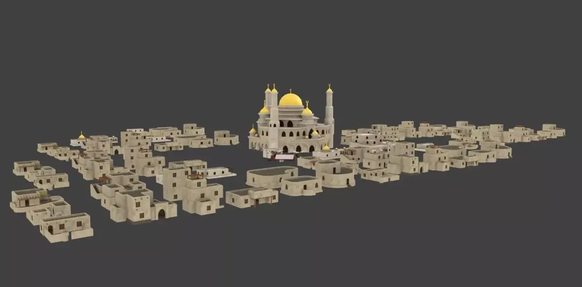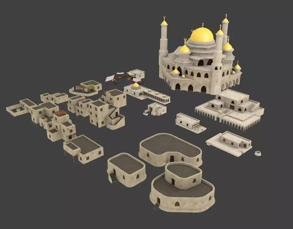 19 arabian house and buildingarabian desert old houses for terrain Textures and Materialsmosque souqhousessketchup file and blender and ,3ds,dea,objTextures in Textures.rar file no uvmap one textures for all houses